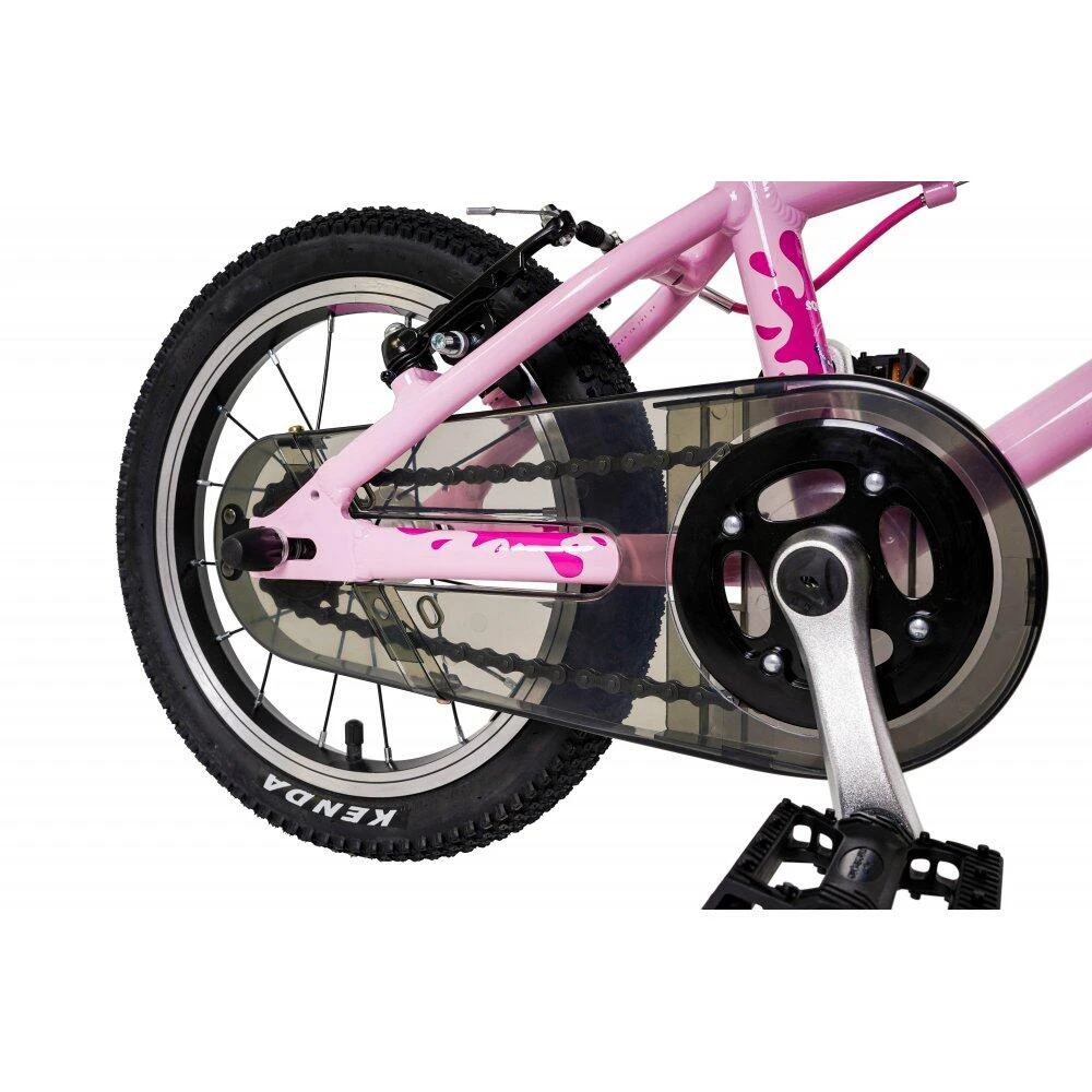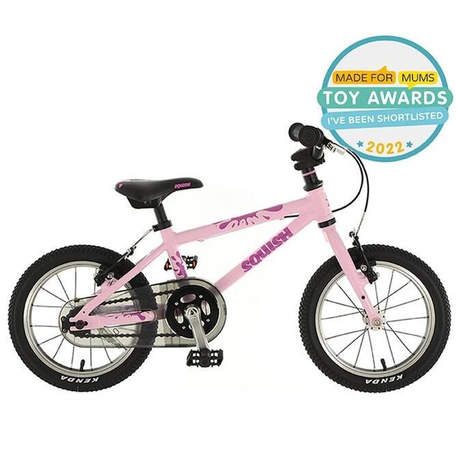 The perfect introduction to 2 wheels! The Squish 14 has been built to be as lightweight, and as easy to use as possible. 14″ wheels and an 8″ triple butted frame make it ideal for riders of 3 years and above. With it’s shortened crank arms, stubby stem, short reach brake levers and funky Selle Royal/Squish co-branded saddle, it not only looks cool but is ideally in proportion with it’s intended rider. We’ve even treated the rims to CNC sidewalls to help increase braking performance and safetly tucked away the chain and cogs with a fully enclosed chainguard, great for protecting clothes…and curious little fingers! All this, and weighing just 5.83kg