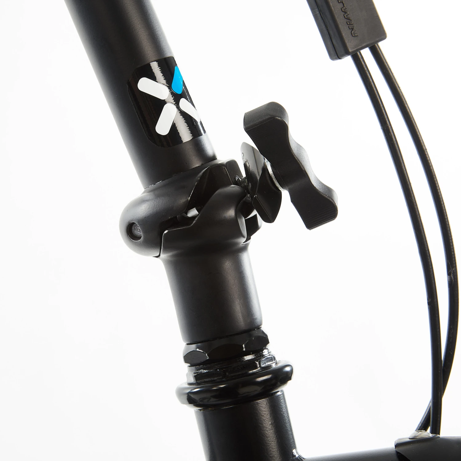 Folding, non-adjustable stem made from aluminium for increased rigidity.