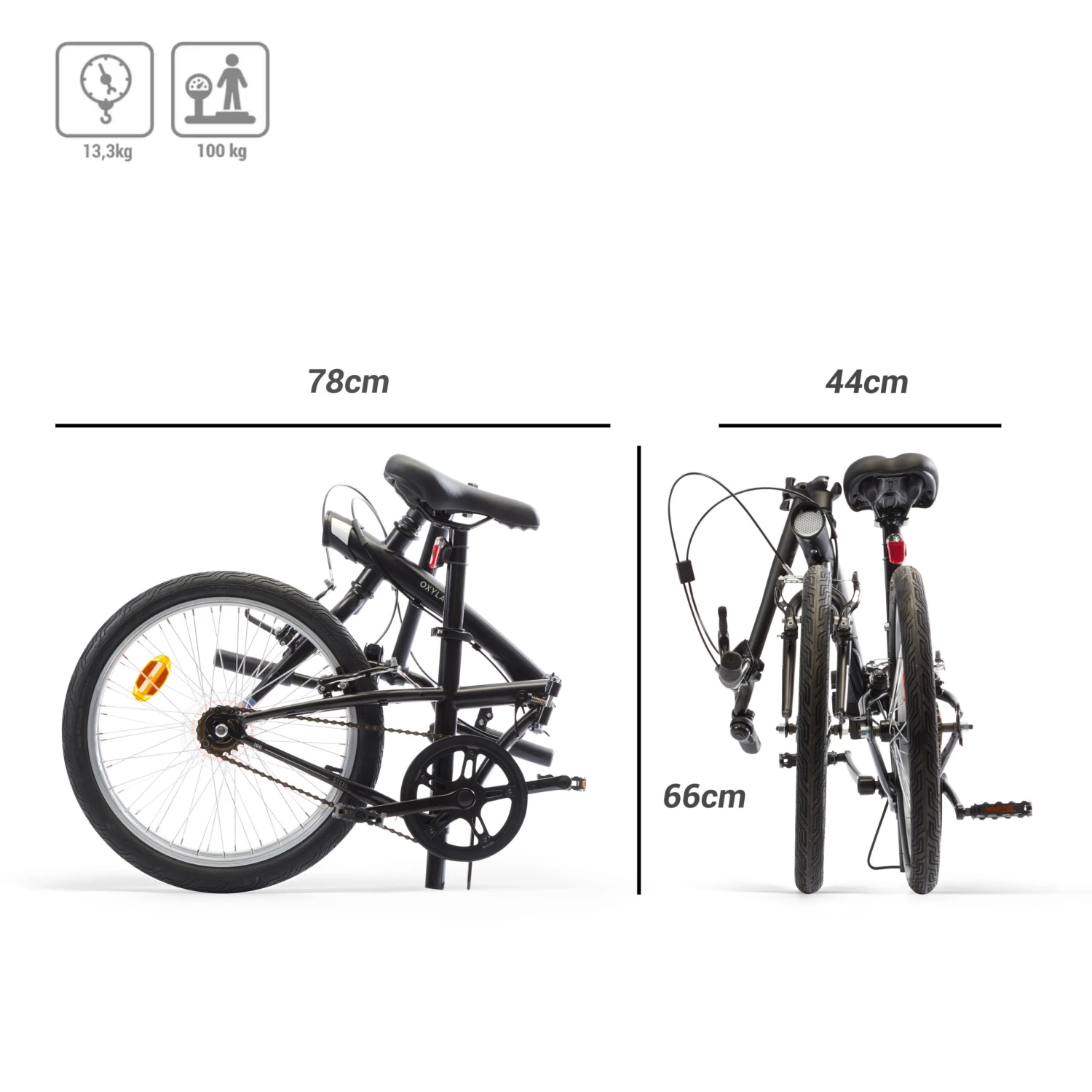 The 100 folding bike is incompatible with a baby carrier or kids’ bike trailers.
