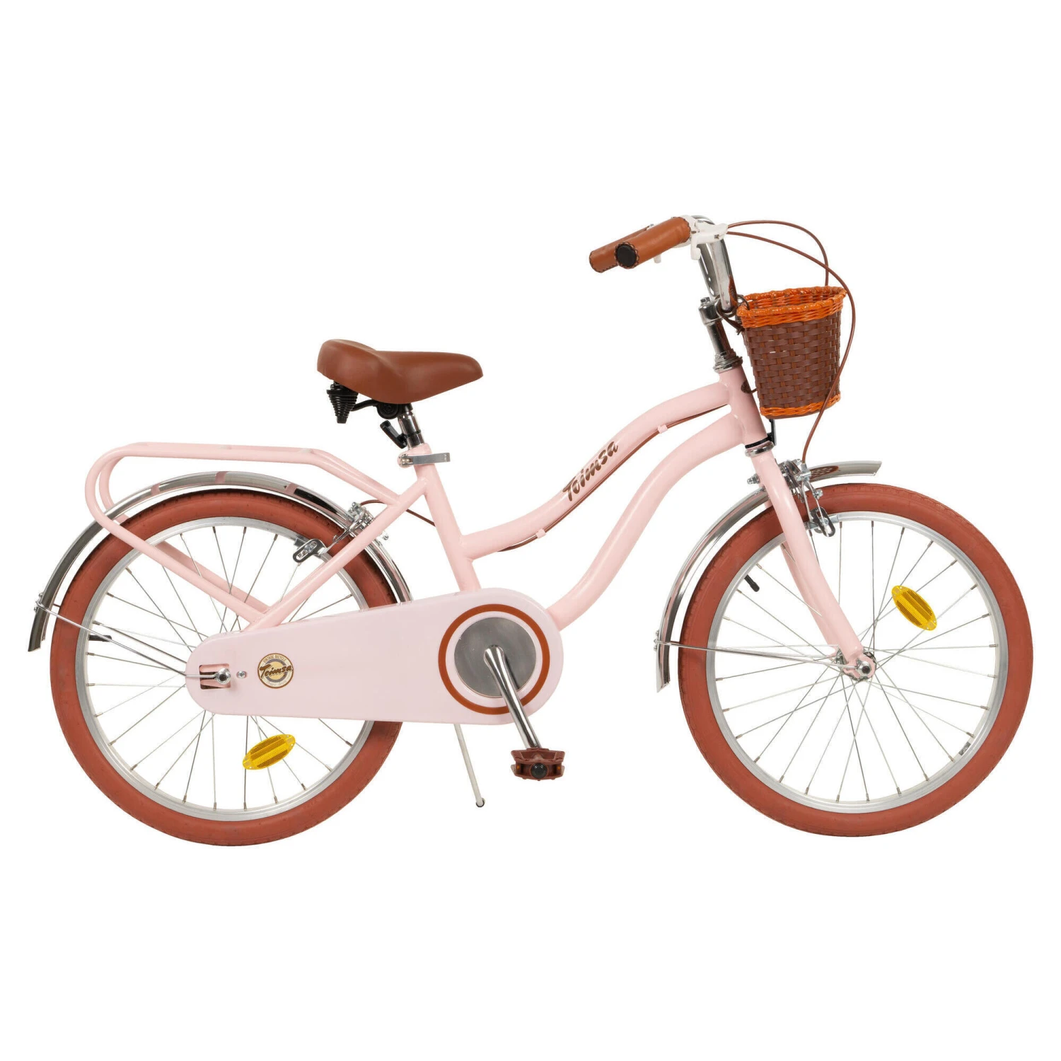 This retro inspired 20″ vintage bicycle in pink comes with a front and rear calliper brakes. it features pneumatic tyres with spoked wheels and chrome mudguards and also has a kick stand. This bicycle also comes with an adjustable sprung saddle and handlebars and also comes with a rear carrier rack and a front wicker style basket to complete the retro look. Suits ages 7 – 9 years. Child height range 120 – 135 cm.
