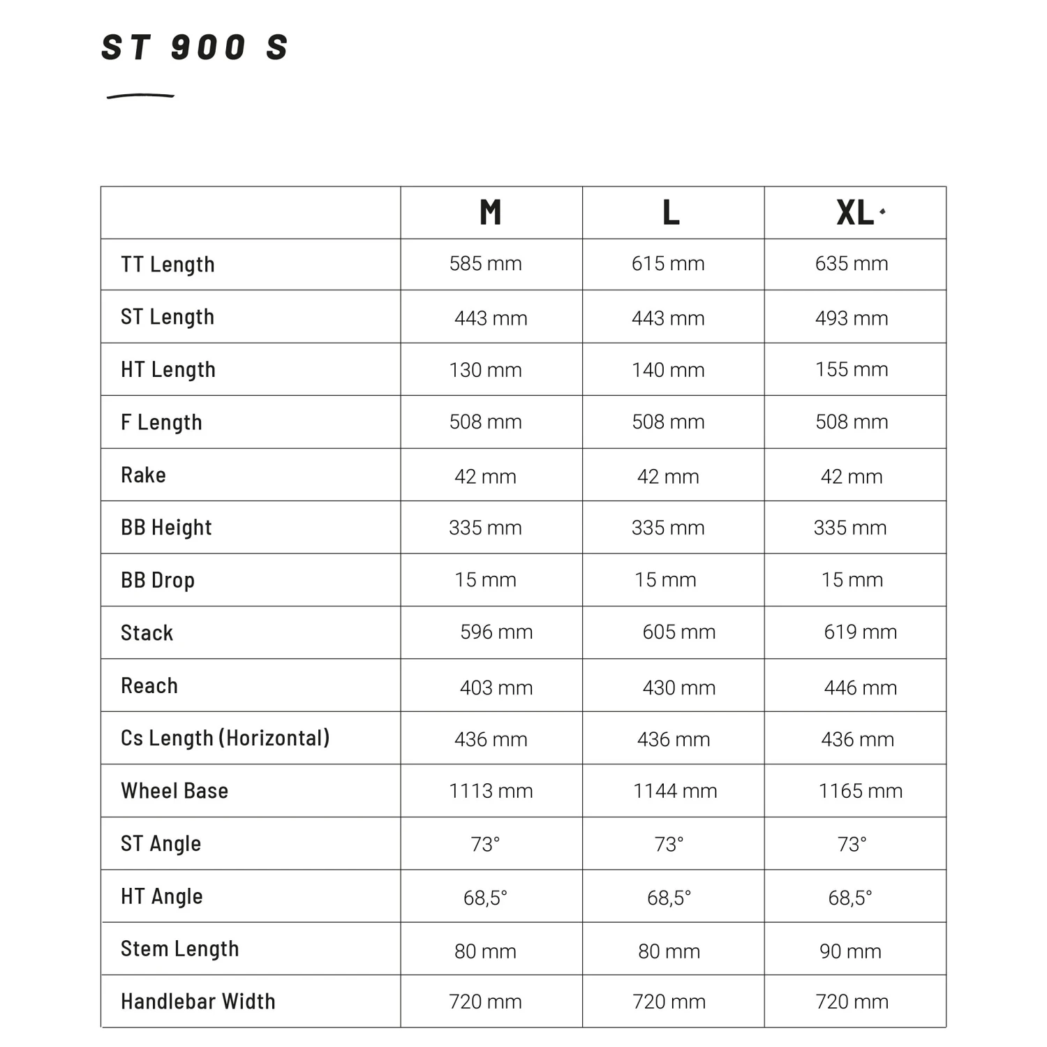 The ST 900’s frame has been carefully designed down to the smallest detail, from the top tube’s relatively pronounced slope, to the wide range of sizes (M: 1.65m to XL: 2m). The ST 900 S MTB is not only lightweight and comfortable, but UNISEX as well.