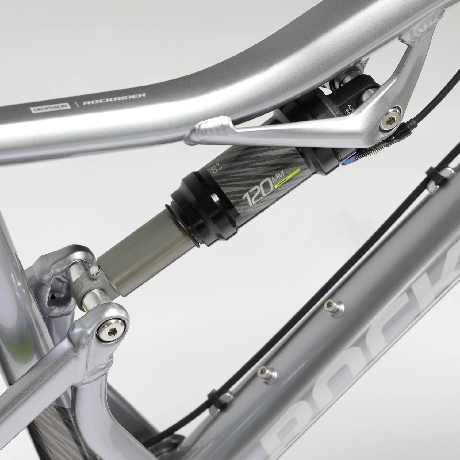 Its 120 mm rear shock uses a single pivot system (more sensitive to small shocks, while staying firm for big impacts) and sealed bearings for a longer life.