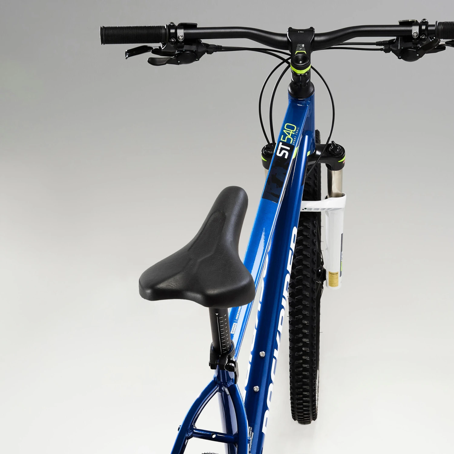 This 27.5″ mountain bike has been designed and developed to best suit mountain-bike rides lasting two to three hours, all year round, in any conditions.Discover the effectiveness and playful side of the ST 540 with 27.5″ double-walled rims, hydraulic disc brakes, and the simplicity of its 18-speed double chain wheels. All whilst staying comfortable.
