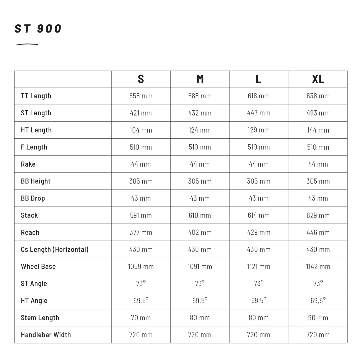 This is a “semi-rigid” mountain bike. Compared to a full suspension mountain bike (with rear suspension), the advantages are clear: lighter weight, less loss of energy on flatter terrain. If however your primary concern is comfort and manoeuvrability, the ST 900 is available in a full suspension version with suspension at the rear.