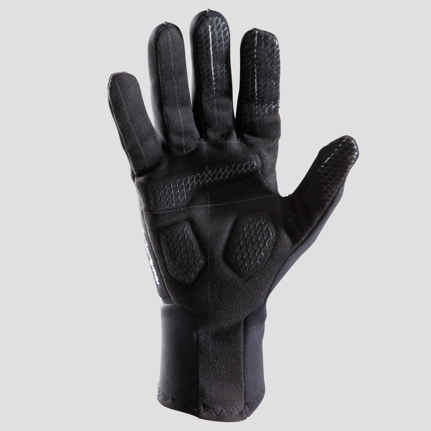 Developed by our engineers for use in mid-season, these gloves combine elasticated fabric with a thin fleece lining for a very comfortable fit.These Triban cycling gloves are perfect in cool weather. The thin brushed fleece gives good grip on the handlebars. Long, thin cuffs for a “second skin” feel.