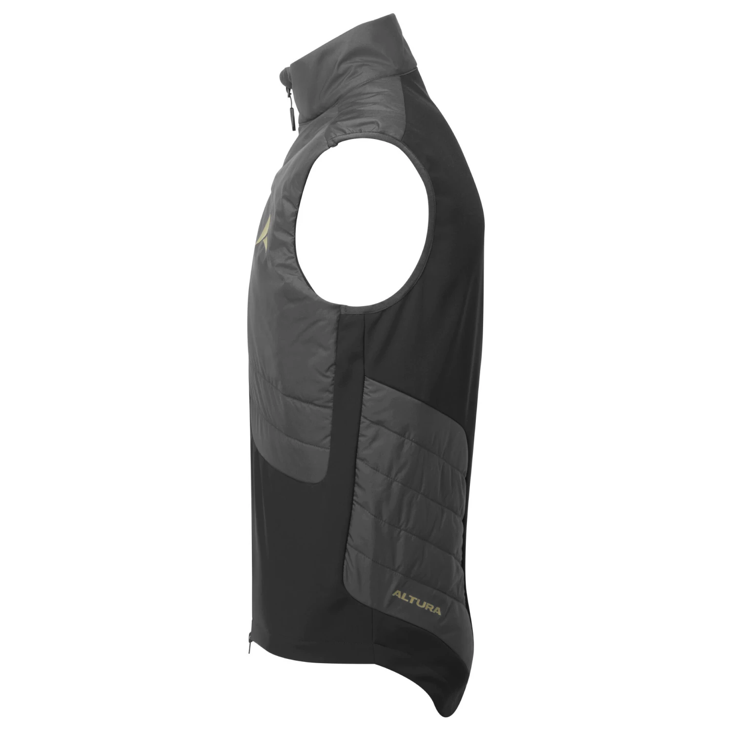Designed and constructed to offer excellent core warmth, the Altura Esker Dune Insulted Pertex™ Men’s Cycling Gilet combines recycled Pertex™ Quantum™ Eco outer windproof fabric with recycled insulation, made from post consumer PET. The brush back softshell fabric in the rest of this hybrid gilet also has excellent thermal properties and advanced breathability through its technical knit construction to prevent hot spots. There is a versatile two way zip making the gilet easy to remove when the temperature rises and a zipped chest pocket to keep personal belongings easily accessible.