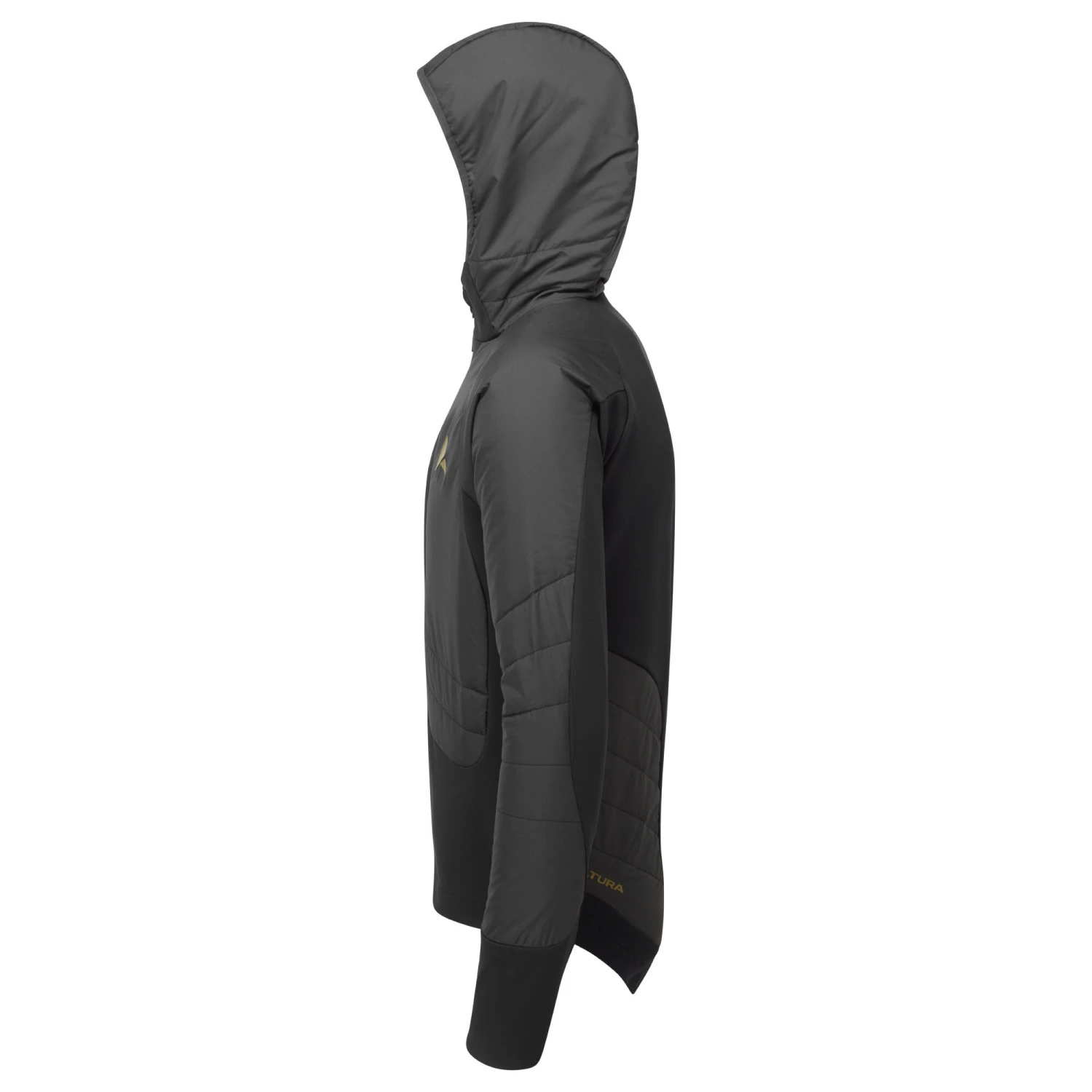 The Altura Esker Dune Insulated Pertex™ Men’s MTB Cycling Jacket is a hybrid piece that delivers warmth to key areas such as the arms, lungs and kidneys using a combination recycled Pertex™ Quantum™ Eco outer windproof fabric and recycled insulation made from post-consumer PET. There is plenty of thermal warmth for the rest of the body from the brushed back softshell fabric which also provides advanced breathability through its technical knit construction. The baffled construction provides articulation through the arms and waist for greater freedom of movement on the bike. A snug, insulated and elasticated hood and shaped cuffs help to keep the drafts at bay making this ideal for those cooler days on the trails and a DWR coating will help to keep you dry for longer.