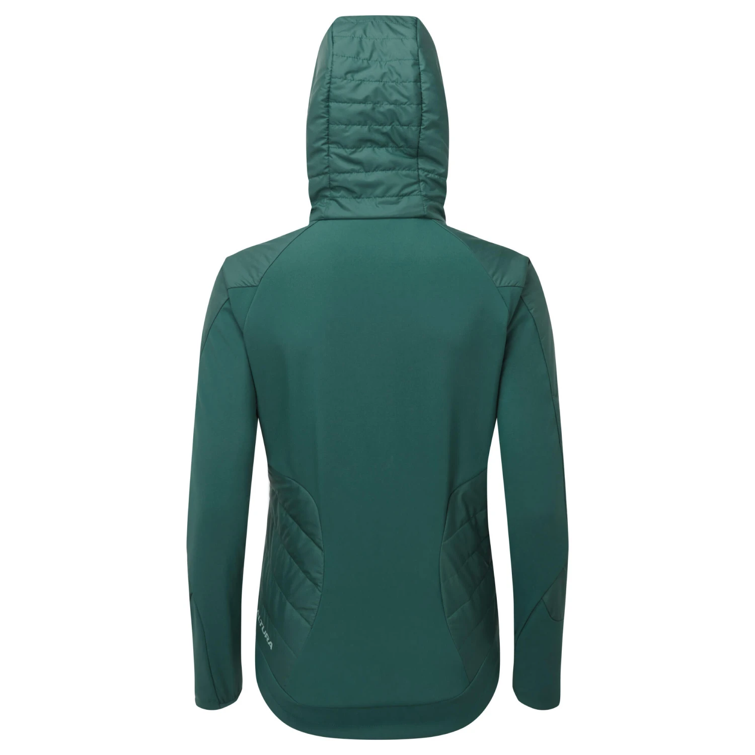 The Altura Esker Dune Insulated Pertex™ Women’s MTB Cycling Jacket is a hybrid piece that delivers warmth to key areas such as the arms, lungs and kidneys using a combination recycled Pertex™ Quantum™ Eco outer windproof fabric and recycled insulation made from post-consumer PET. There is plenty of thermal warmth for the rest of the body from the brushed back softshell fabric which also provides advanced breathability through its technical knit construction. The baffled construction provides articulation through the arms and waist for greater freedom of movement on the bike. A snug, insulated and elasticated hood and shaped cuffs help to keep the drafts at bay making this ideal for those cooler days on the trails and a DWR coating will help to keep you dry for longer.