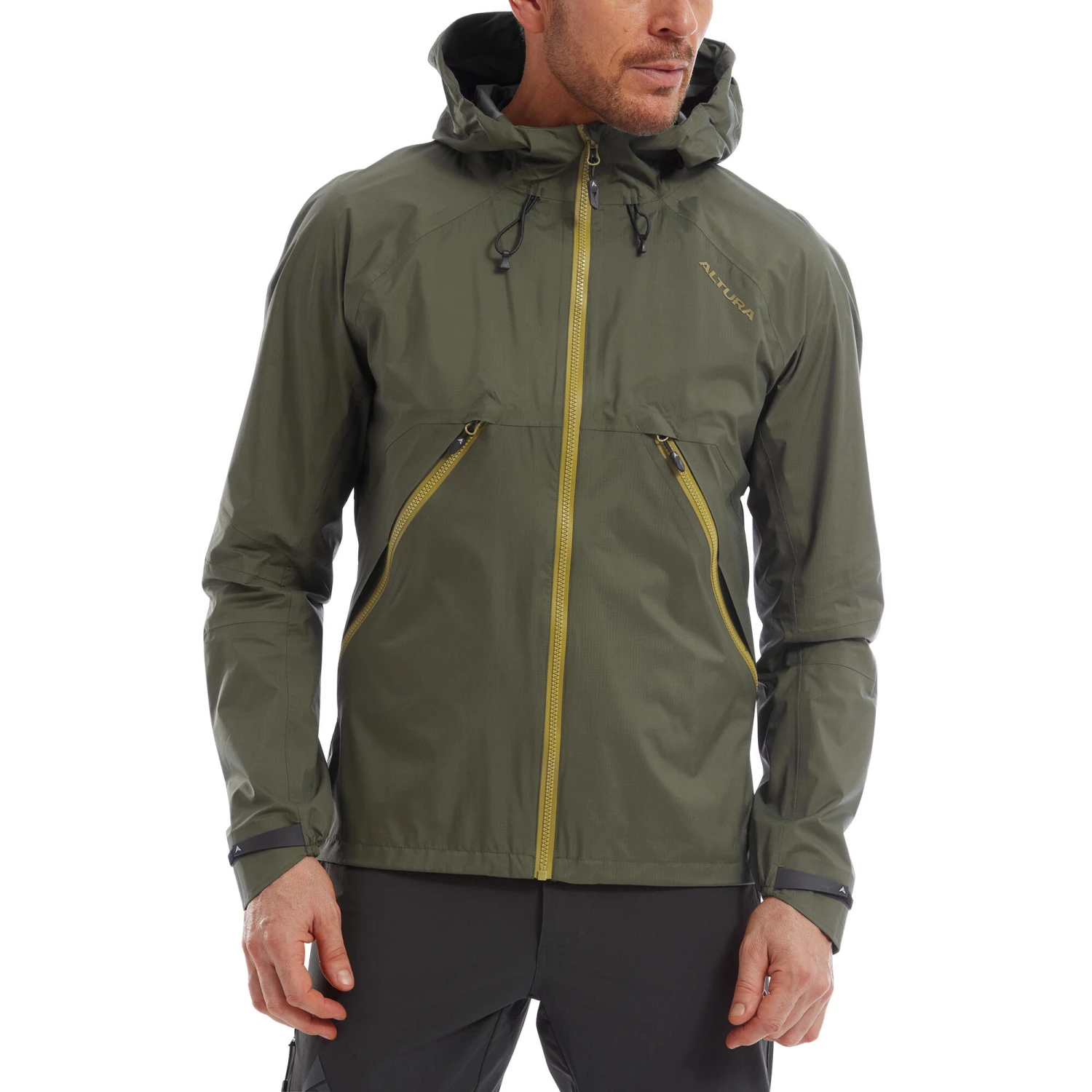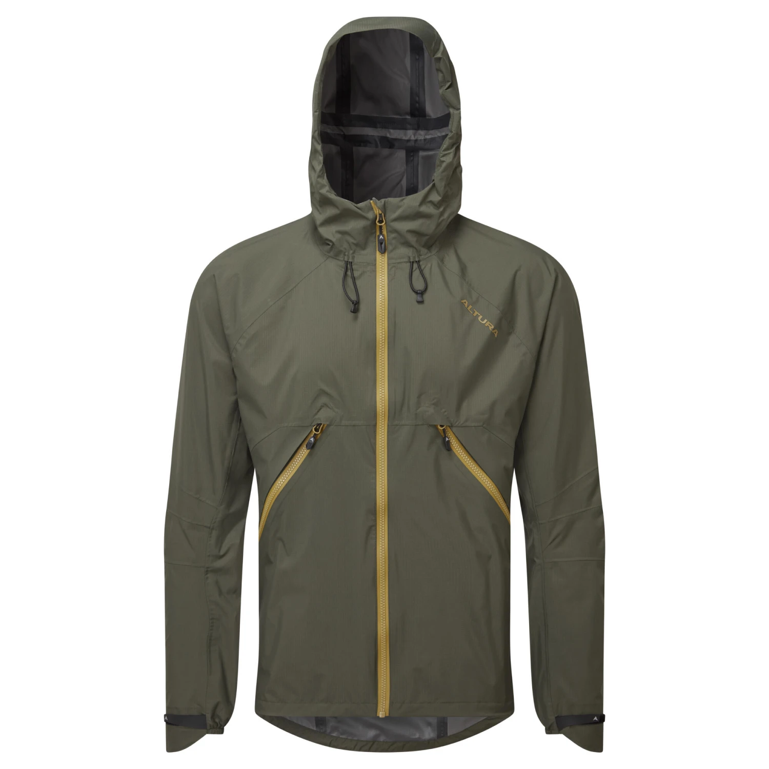 The Altura Ridge Pertex Men’s Waterproof Jacket is designed for the complete adventuring experience. Worn as a cycling jacket it utilises a helmet adjustable hood to prevent material flapping, cuff tabs to create a seal with your gloves, large pockets that are easily accessible in gloves, ventilation points to release heat and there is room for elbow protection on /(under) the sleeves for MTB riders. Off the bike the jacket has all the functionality of a hiking or walking waterproof jacket with 20k / 20k waterproof and breathability. This is thanks to the Pertex™ Shield 2.5 layer fabric with superior waterproofing, wind proofing, breathability and additional durable water-repellent coating. The jacket is designed to transition from mtb trails to woodland walks and gravel grinders camps through a weathered hike.