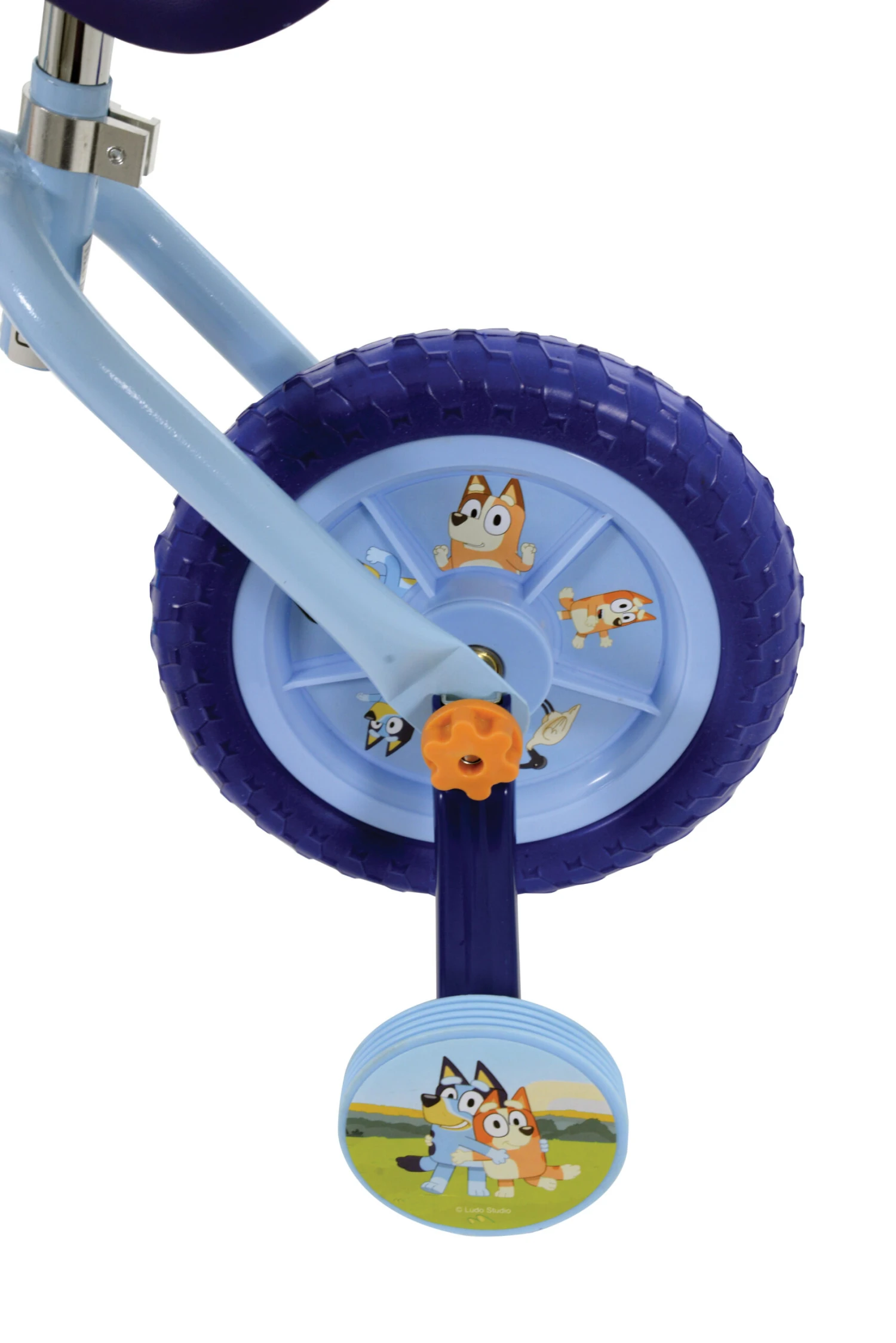 The perfect first bike for any Bluey fan, with colourful character graphics, the 2-in-1 converts easily from a training to a balance bike in a matter of minutes. Stage one is the pedal bike where riders can get used to pedalling and steering with the aid of rear stabilisers. Stage two is the balance bike mode where pedals and stabilisers are removed as core coordination, strength and skill improve to allow ‘push off’ and balance via freewheeling. The wide EVA moulded wheels with mag wheel inner provide extra stability and the deep tread tyres offer a strong yet comfortable ride with excellent grip. Both saddle and handlebars are adjustable in height to suit children as they grow and gain in confidence and a soft saddle and hand grips provide additional comfort whilst learning.