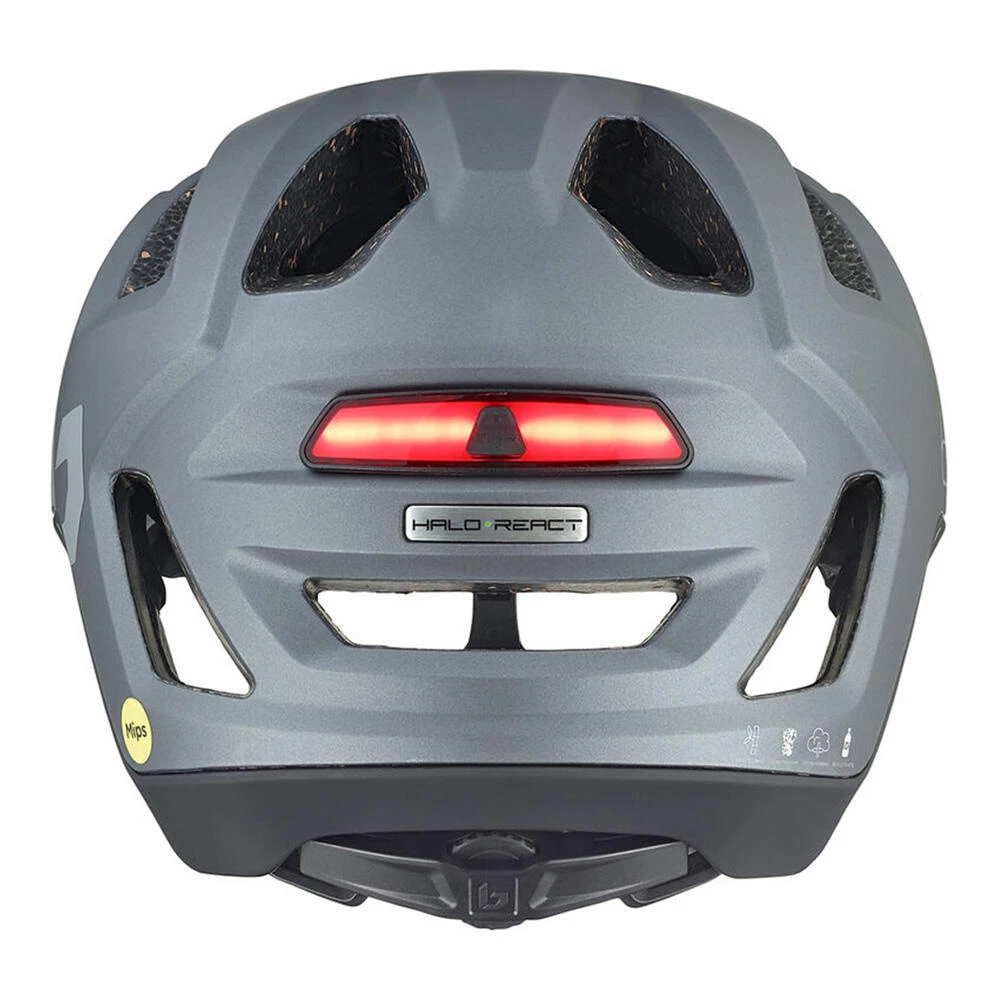 Star of Bollé’s eco designed range for commuters, the HALO REACT MIPS is a must have for the urban environment. 100% recycled lining and webbing, plastic parts in 100% eco-nylon, cap in 100% recycled fabric, water based print and cork incorporated in the EPS and shell with 40% recycled plastic are all part of Bollé’s eco approach. The HALO REACT MIPS is a high end urban helmet above all designed for your safety. It is equipped with an integrated and USB rechargeable back and front LED system, easy to turn on and off with several lighting modes, to make sure you will be seen at night. At Bollé, when it comes to protection, they always look for the best so combined their AViD Progressive EPS technology with MIPS, the best brain protection available. With the HALO REACT MIPS you will stay safe at all times.