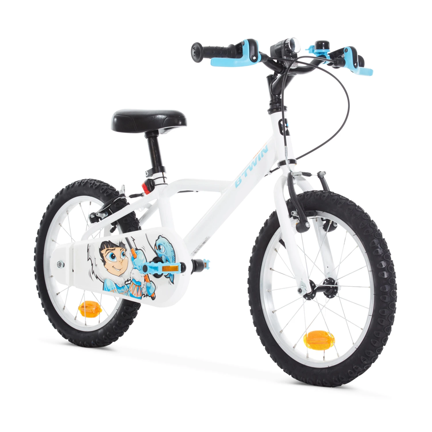 Ready to start cycling? We’ve designed this 16″ bike so children aged 4.5 to 6 years, measuring from 105 to 120 cm, can learn to cycle like the big kids.This kids’ bike is designed specifically for children, with a chain guard for safety, an easy-to-mount low frame, and brakes designed for small hands. Compatible with our 16″ stabilizers.