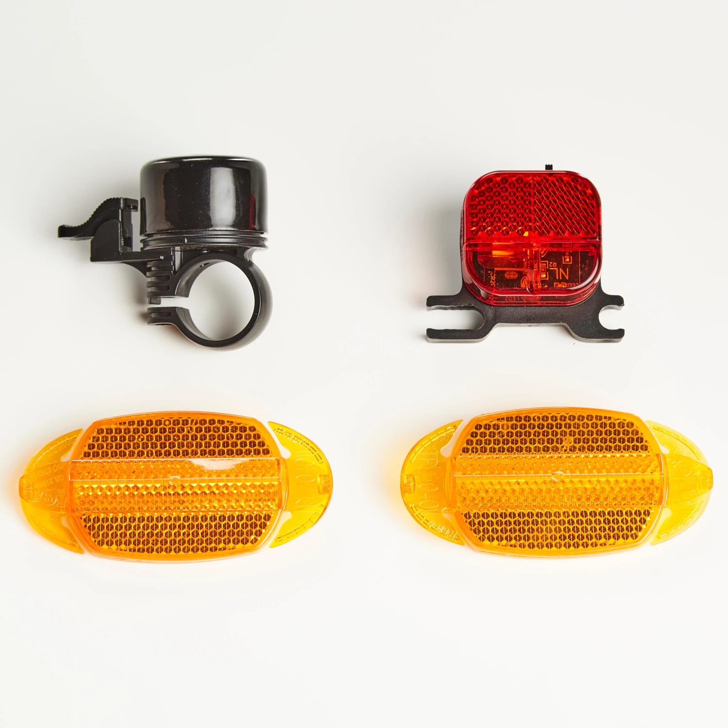 The bike is fully equipped for riding on public roads: battery-powered rear lights, bell, and reflectors on the wheels.