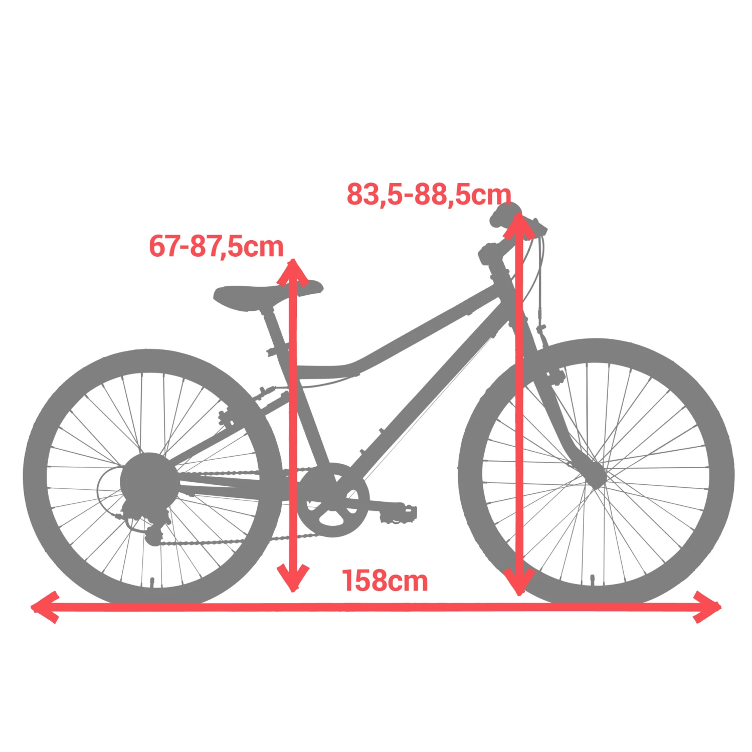 We’ve designed this hybrid bike for children aged 9 to 12 years (135 to 150cm) wanting to cycle in urban parks or landscaped paths.Our 24-inch children’s hybrid bike is equipped with 6 speeds for a child’s first rides. It can take on any type of terrain: from flat terrain to hilly paths.