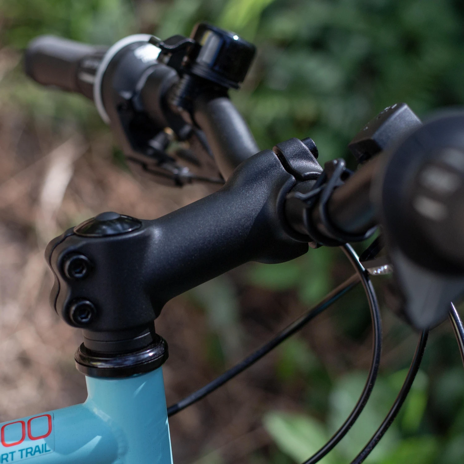 To provide you with maximum comfort, this mountain bike is equipped with a high-rise stem. Your position on the bike is slightly raised so you can better anticipate your trajectory.