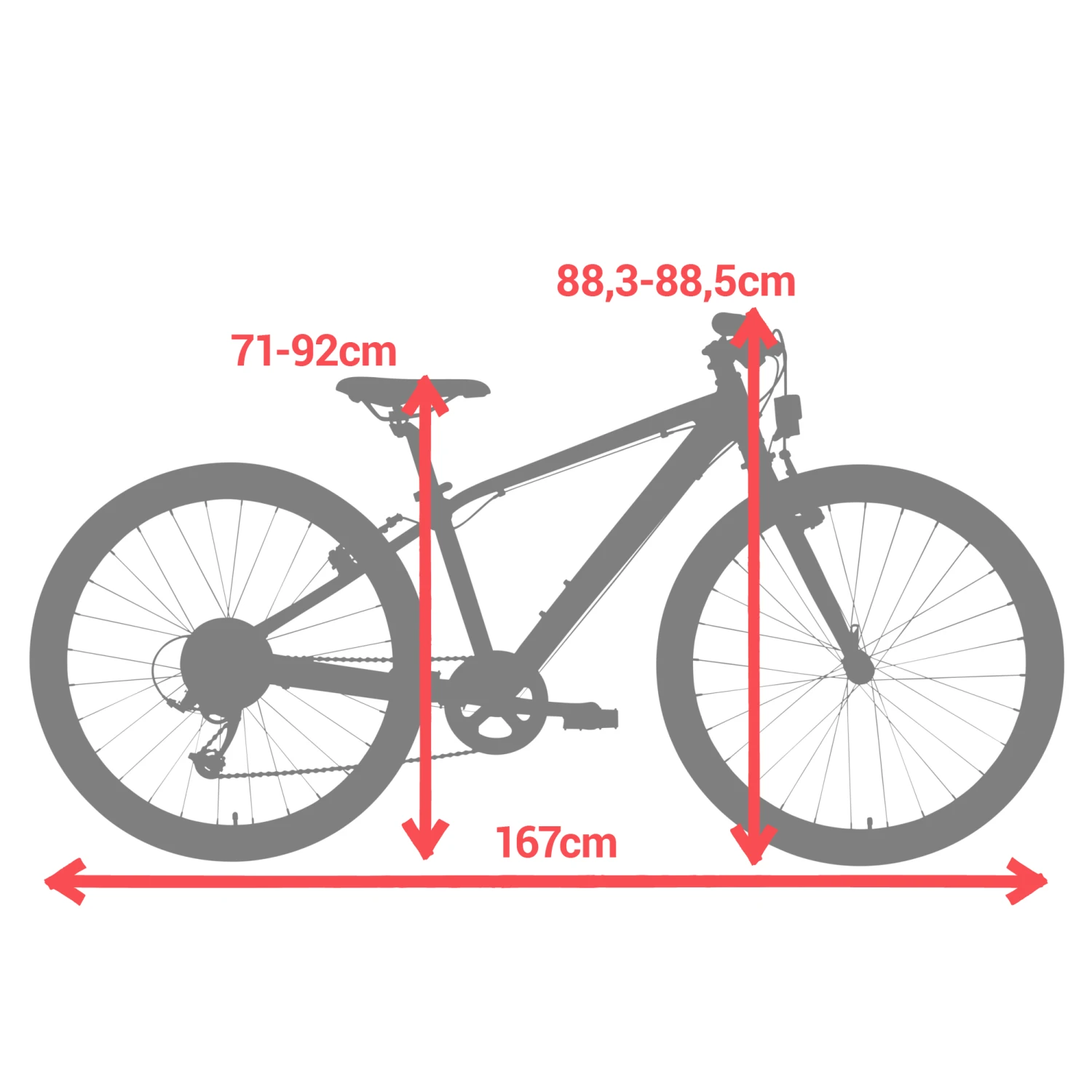 Dimensions of the bike ready to use