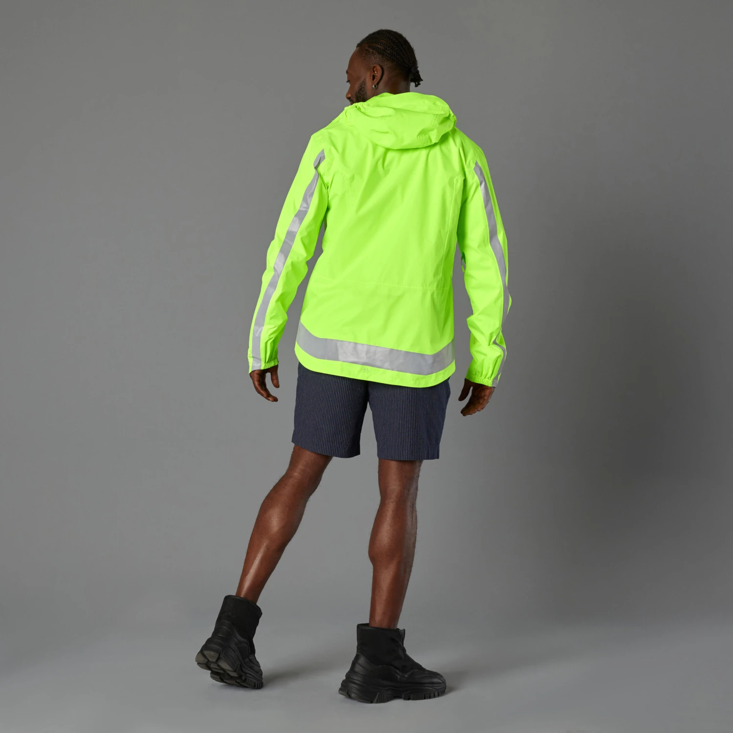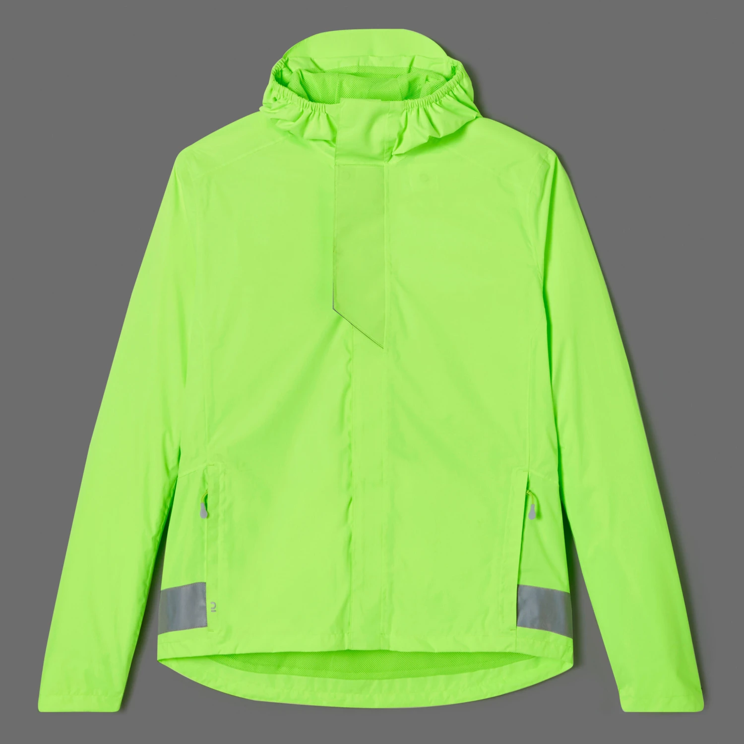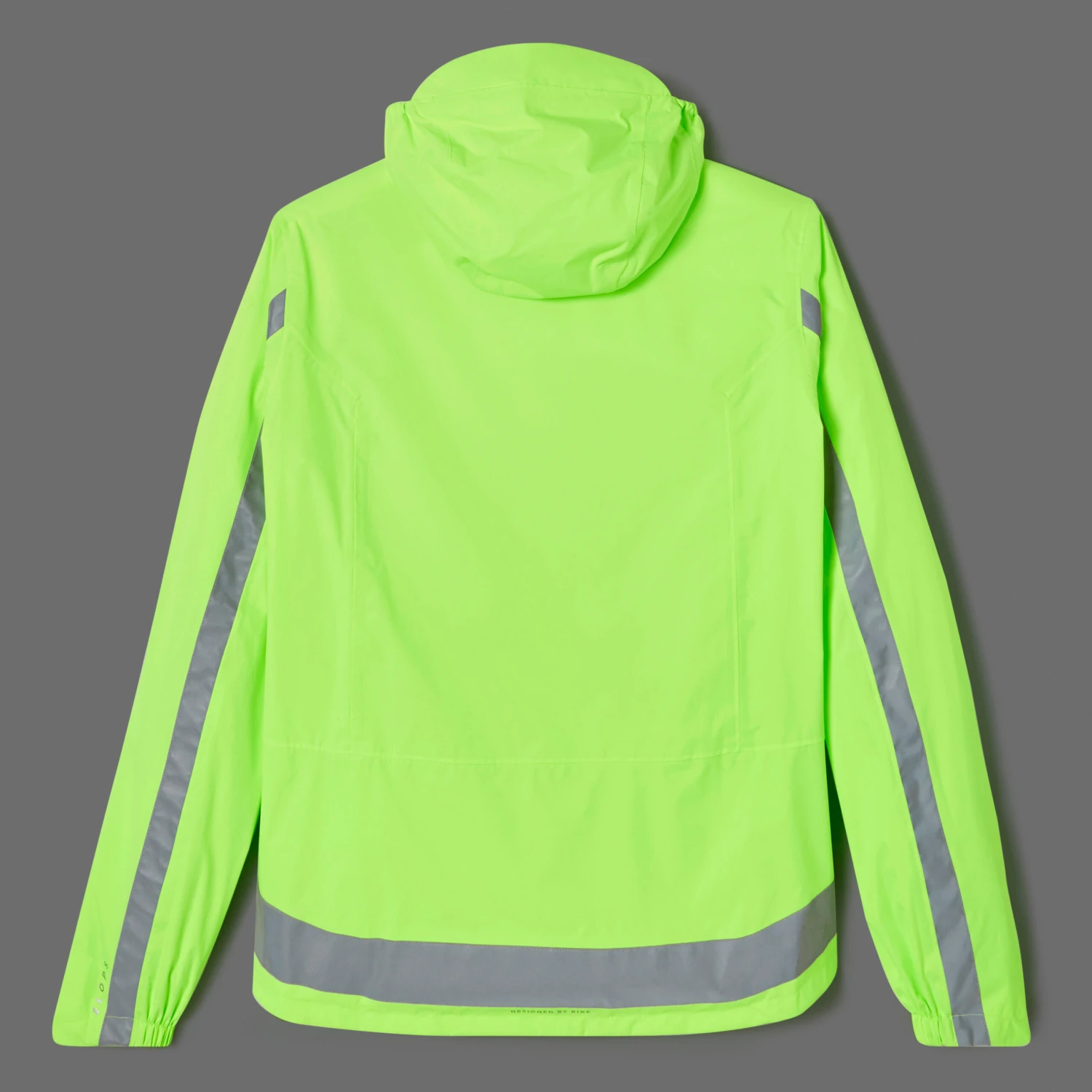 Stay visible while protecting yourself from the wind and rain. With neon colours and reflective strips, this jacket is designed to be seen both day and night.Stand out from any angle. This waterproof cycling jacket is EN 1150 certified for day and night visibility. The hood can go over or under your helmet.