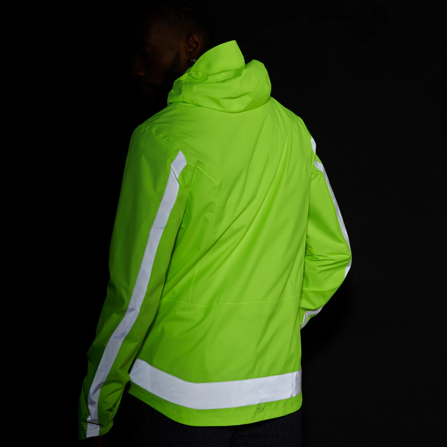 The reflective parts have been positioned based on the constraints of cycling (leaning forwards, wearing a backpack, signalling with your arm, etc.) to guarantee 360° visibility at night from up to 50 m away when picked up by car headlights.