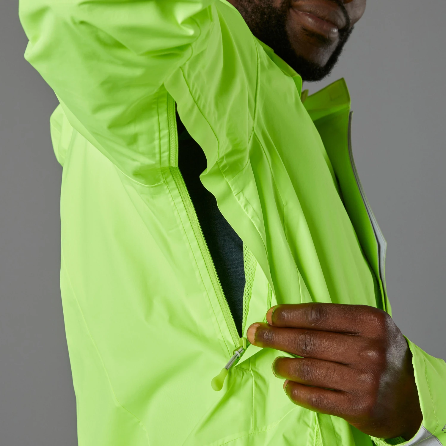 Zipped vents under the arms to let air circulate freely.