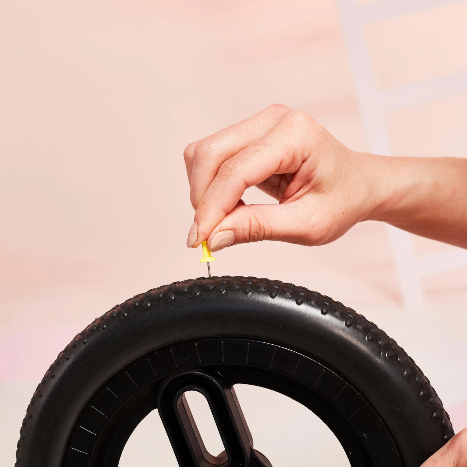 We’ve chosen the simple option for our entry-range model, with a metal axle inserted directly through the wheel’s plastic rim.