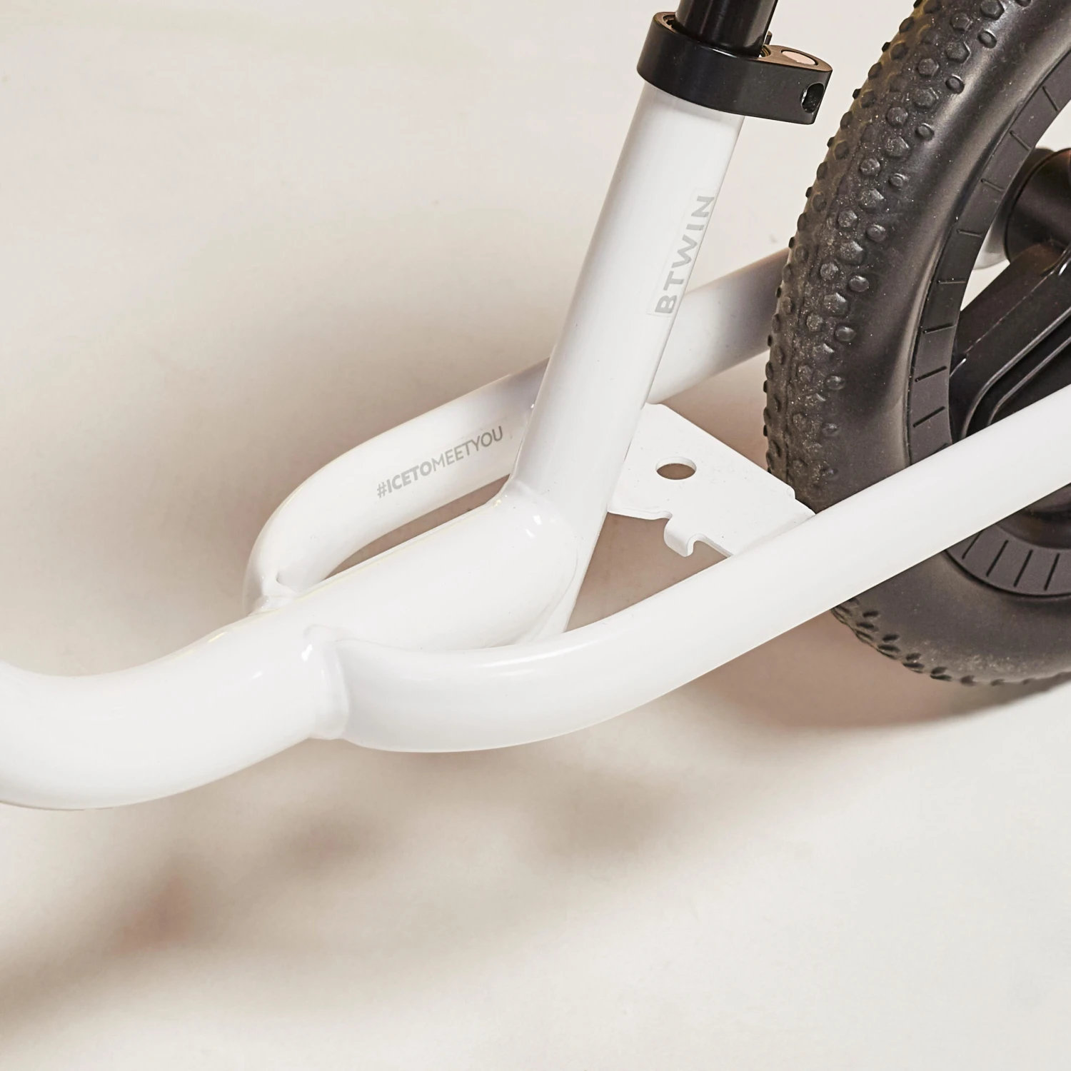 We’ve chosen to let the handlebar rotate a really long way so that kids can manoeuvre at a much wider range of angles. However, the shape of the frame stops the wheel from coming far enough round for the handlebars to end up back to front. Kids are given free rein to practise their steering while remaining safe.
