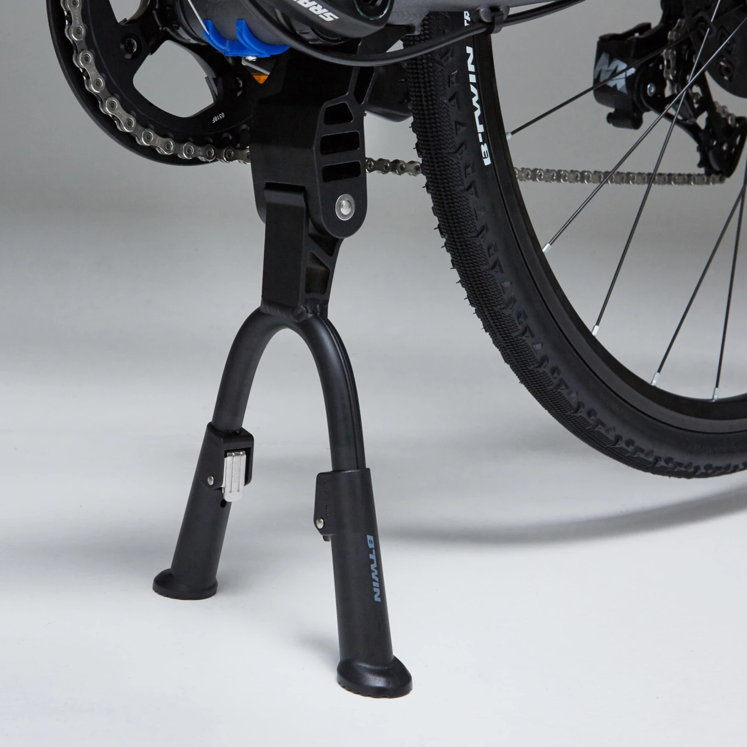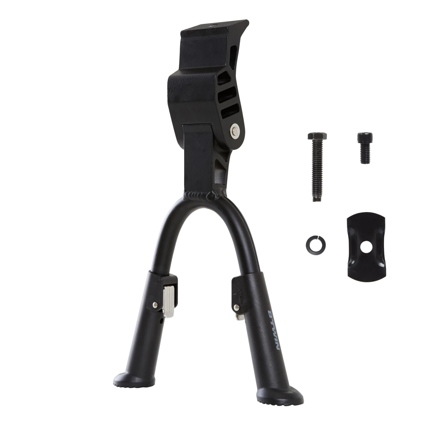 The double central stand attaches near the chainset. A central plate is provided in case your bike is not equipped with screw holes (sold with the product).