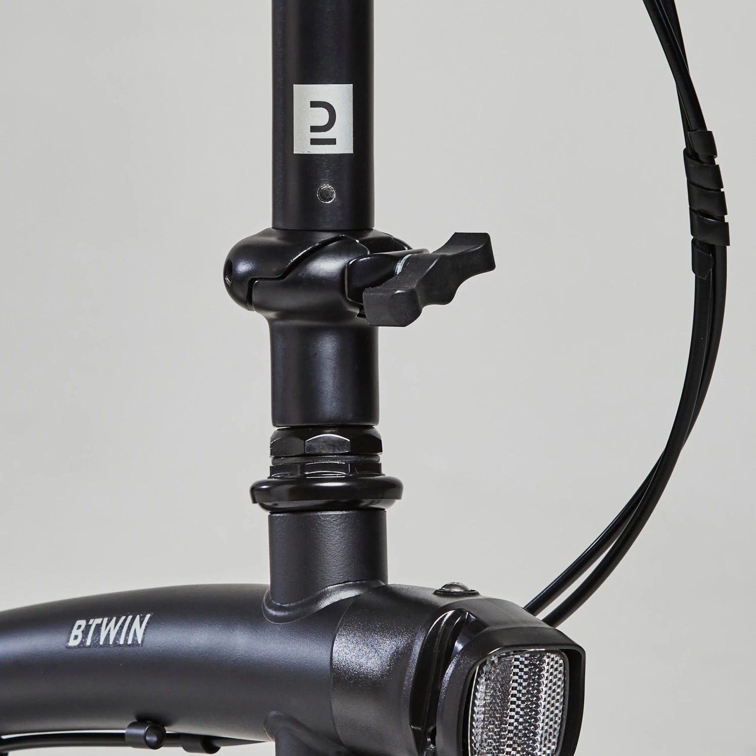 – Built-in luggage bracket at the front for the 25 L folding bike front bag (ref: 8735484 / bag released in: May 2023).