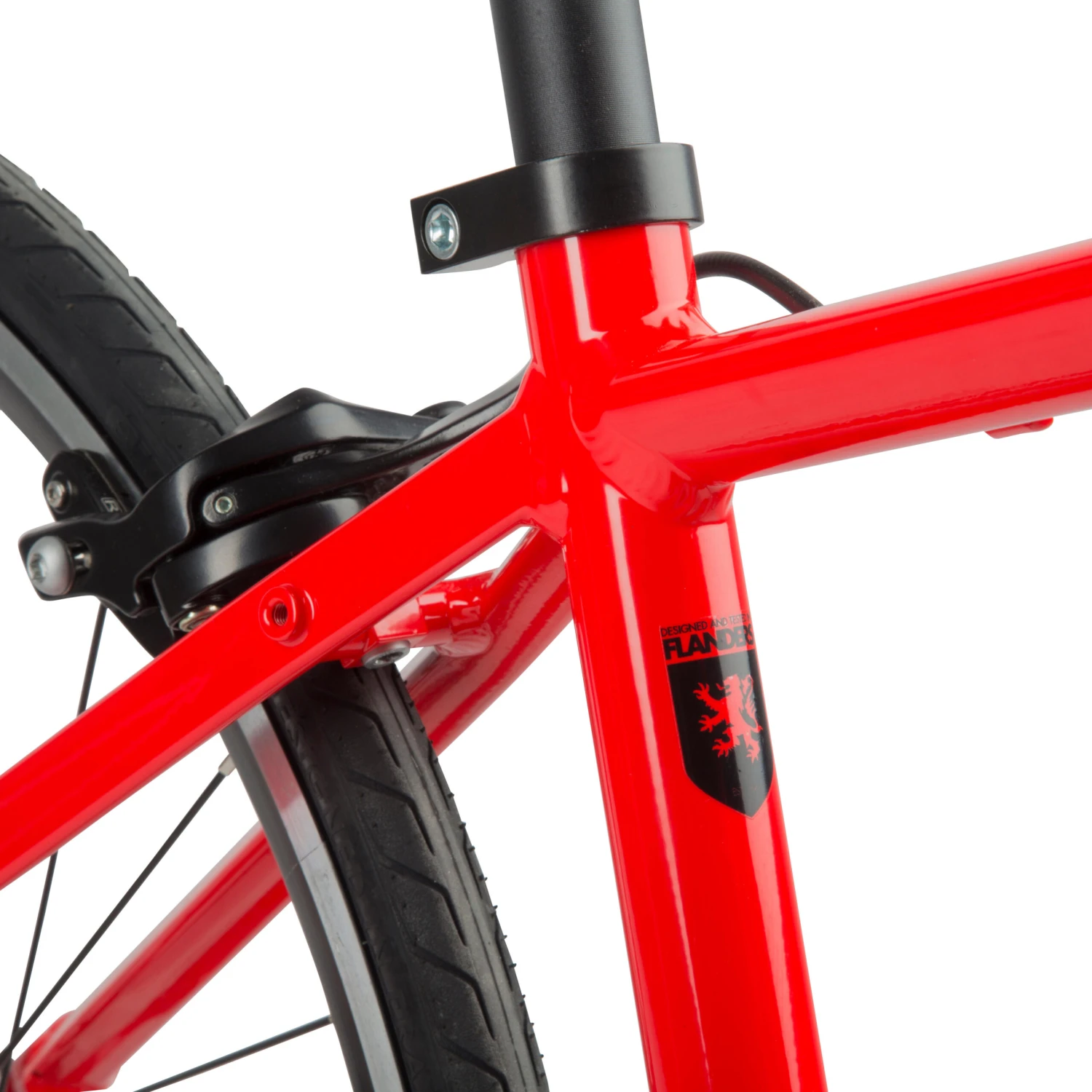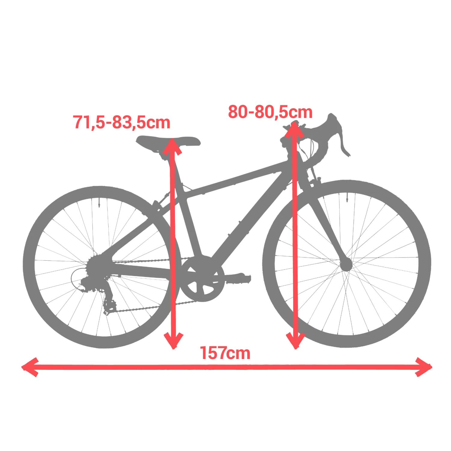 We’ve designed this road bike for children ages 9 to 12 (135 cm to 150 cm) wanting to get started with road cycling.To help kids learning to cycle on the road, we’ve equipped this road bike with an aluminium frame, large wheels, dual brake controls and a specially-sized shoulder-width handlebar.