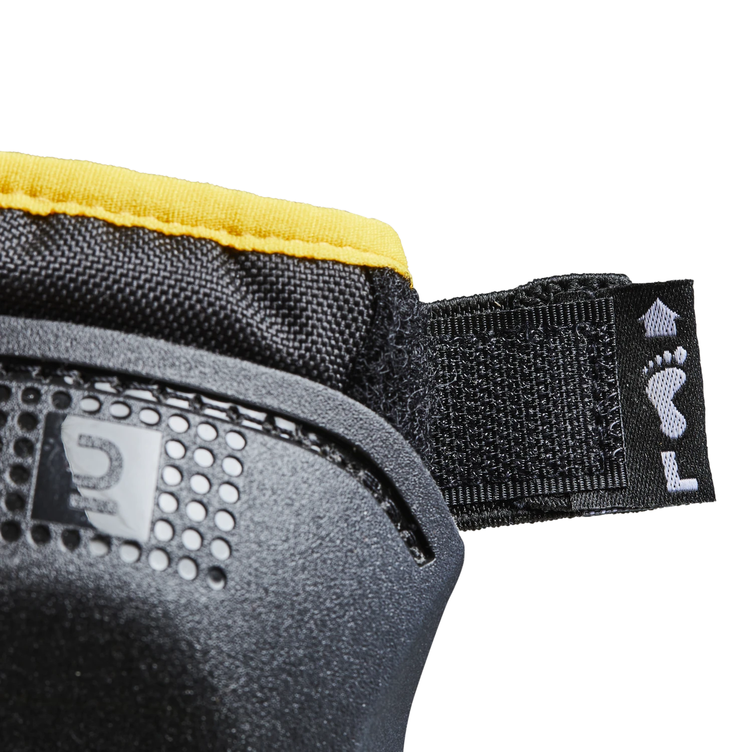 The knee and elbow pads can be put on without removing shoes.And so that your child can sort themselves out like the big kids and put them on without your help, the right is a different colour from the left, and there’s a little diagram for identifying the right (R) and left (L).