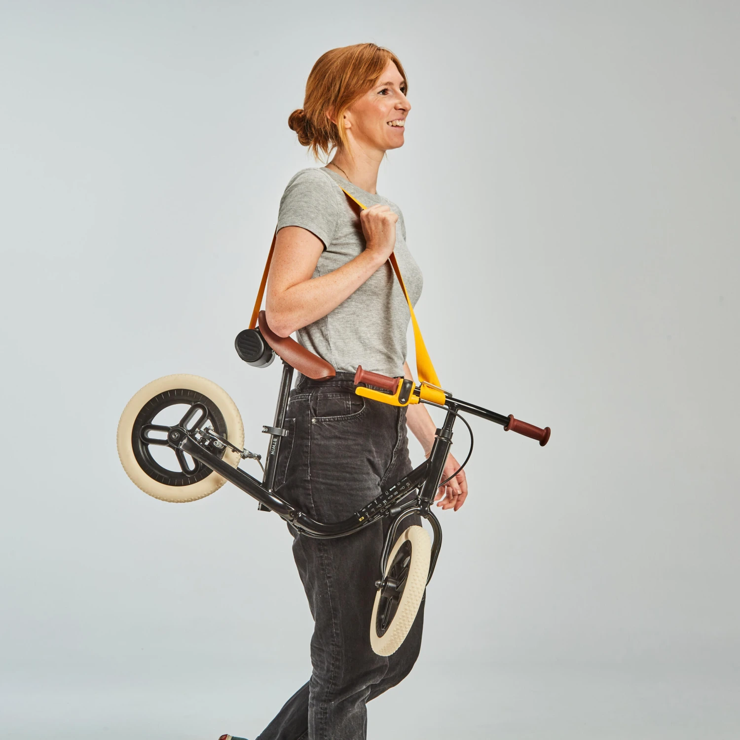 This retractable strap lets you carry it over your shoulder to finish your walk.Practical and discreet: once clipped under the seat, the retractable strap is always ready to be used by an adult. We know what those last 500 metres can feel like!