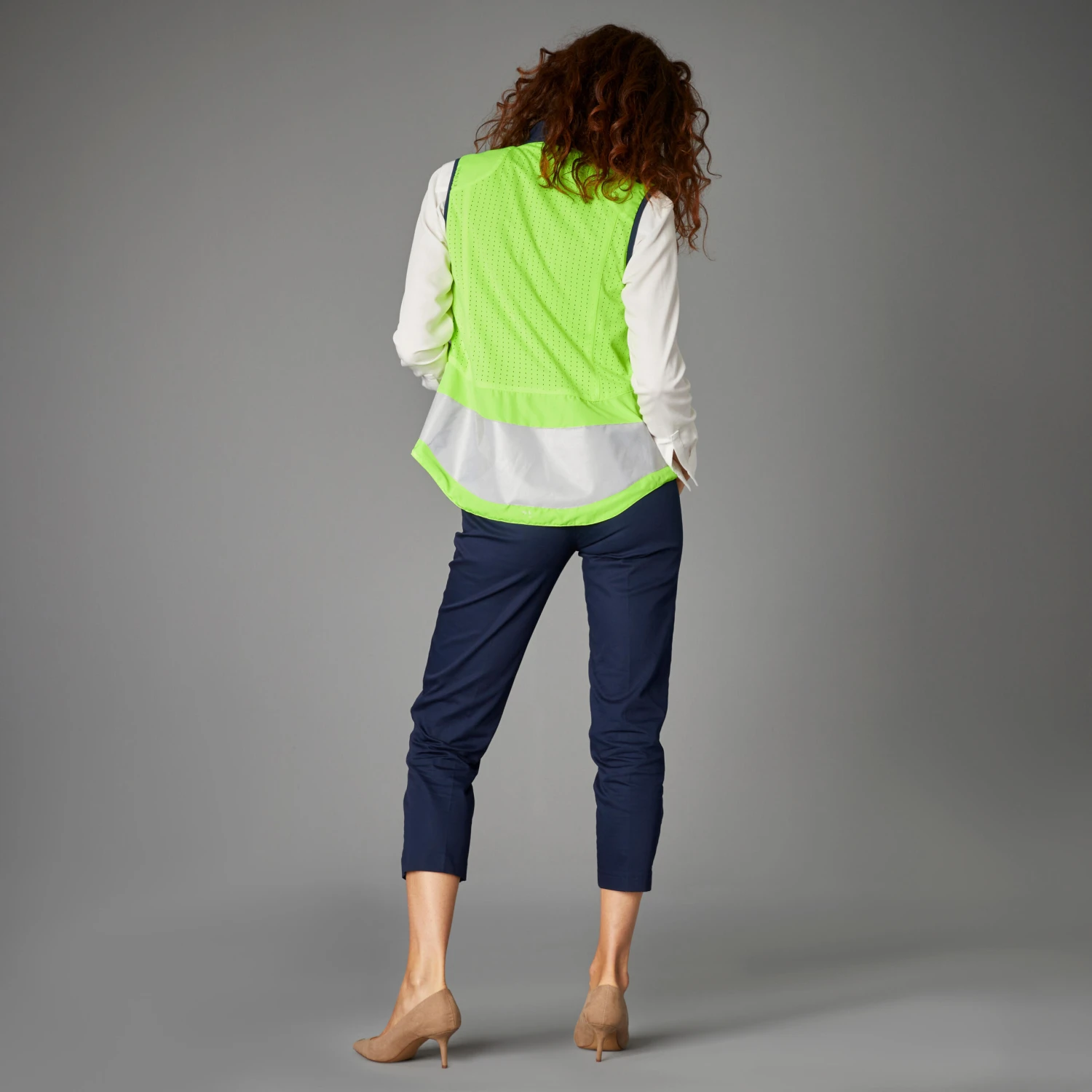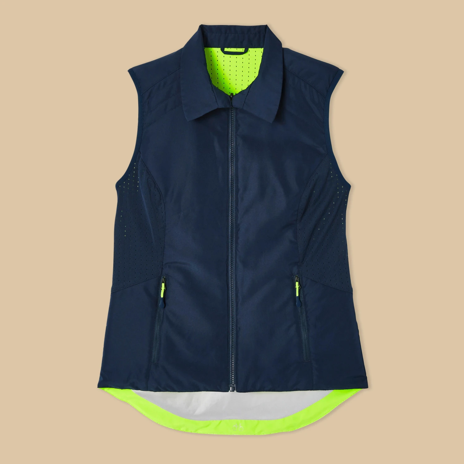 Stay visible while protecting yourself from the wind and cold. With neon colours and reflective strips, this jacket is designed to be seen both day and night.This sleeveless jacket is reversible, so there’s no need to bring something less visible to change into. Turn it inside out for a more discreet and stylish look.