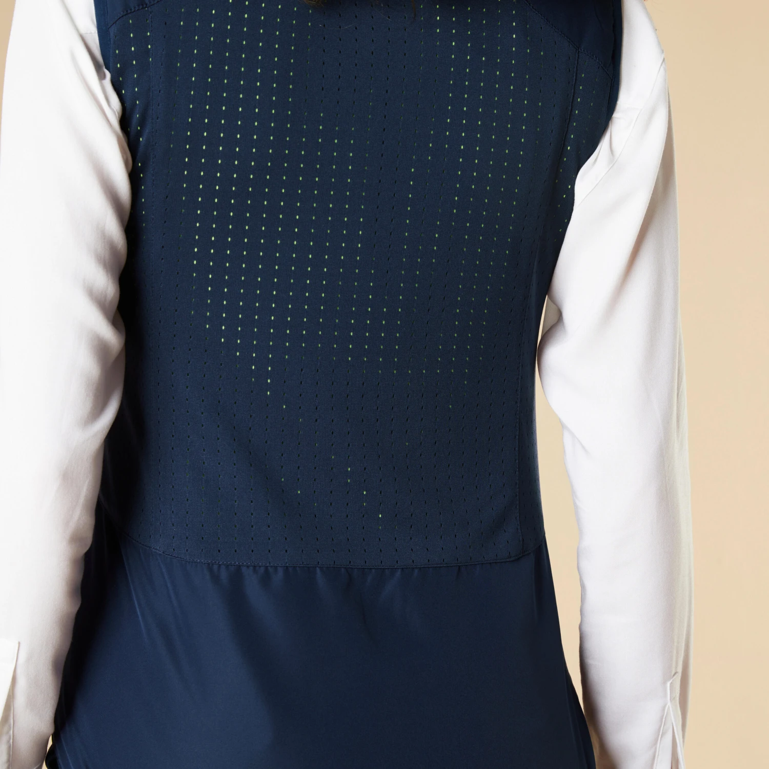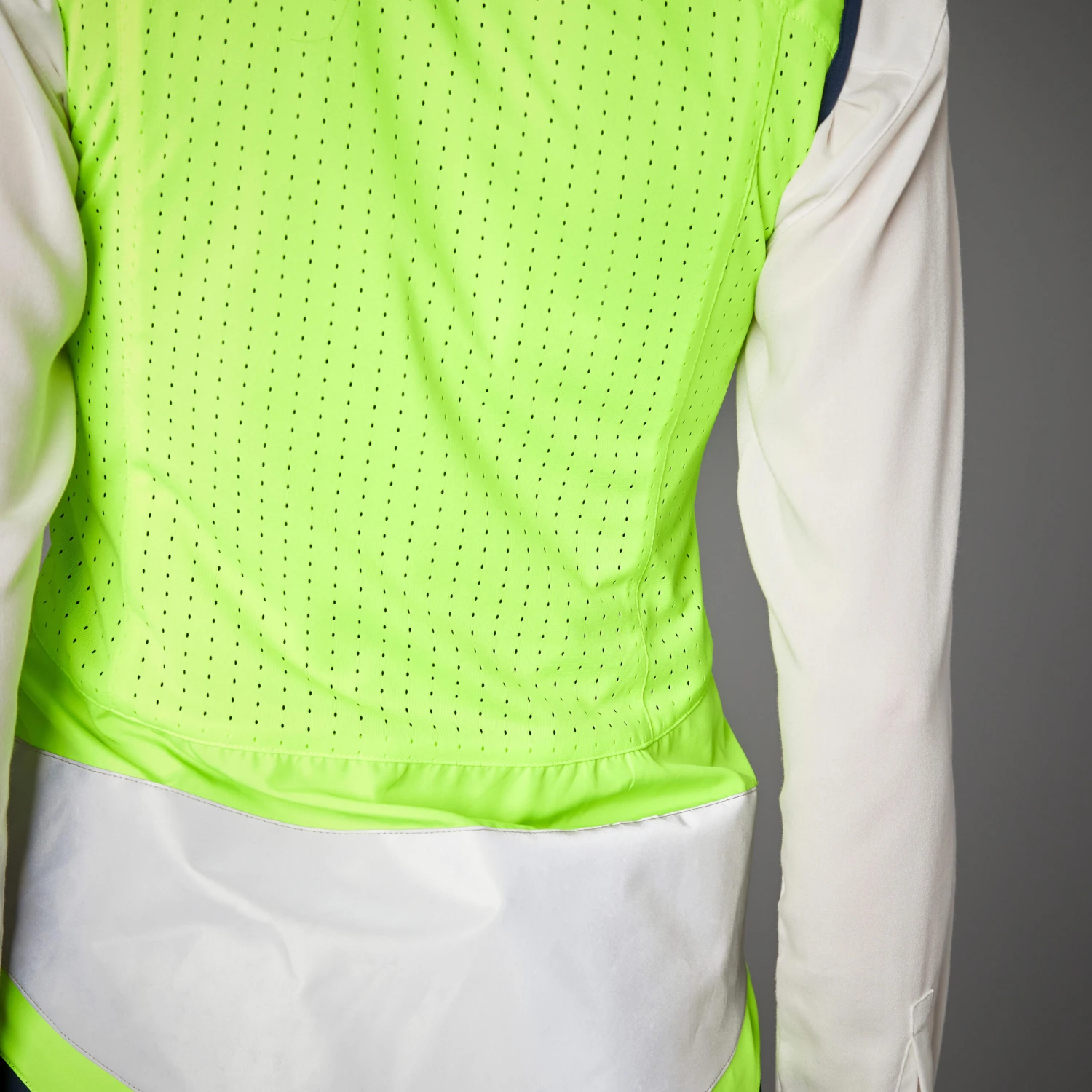 This gilet is designed for the position you are in when cycling. Its fitted shape covers the lower back and the neck (thanks to a magnetic collar) while cycling, providing excellent protection.