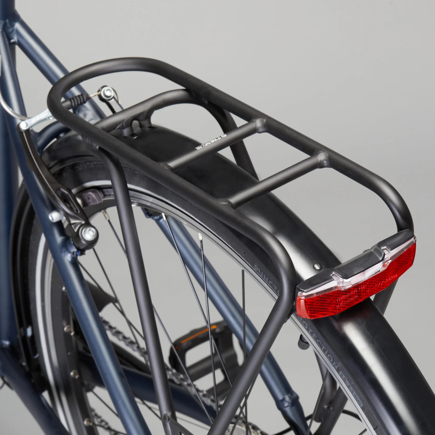The pannier rack can carry up to 27 kg, including a child seat. The 12 mm diameter tubes make it compatible with the entire Elops baggage range available at DECATHLON.