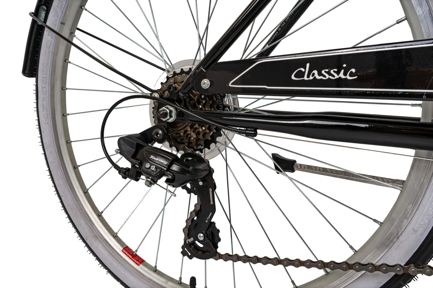 The new Dawes Classic has been redesigned to offer all the elegance of our more premium Duchess models but at a new lower price. The classic Dutch design is comfortable to ride, easy to dismount and comes equipped with a quality rattan front basket. Shimano Tourney offers six gears and the fitted chainguard helps keep you and the bike clean. Available in sophisticated black, the Dawes Classic comes with matching brown saddle and grips and is finished with silver components for a look that never ages.