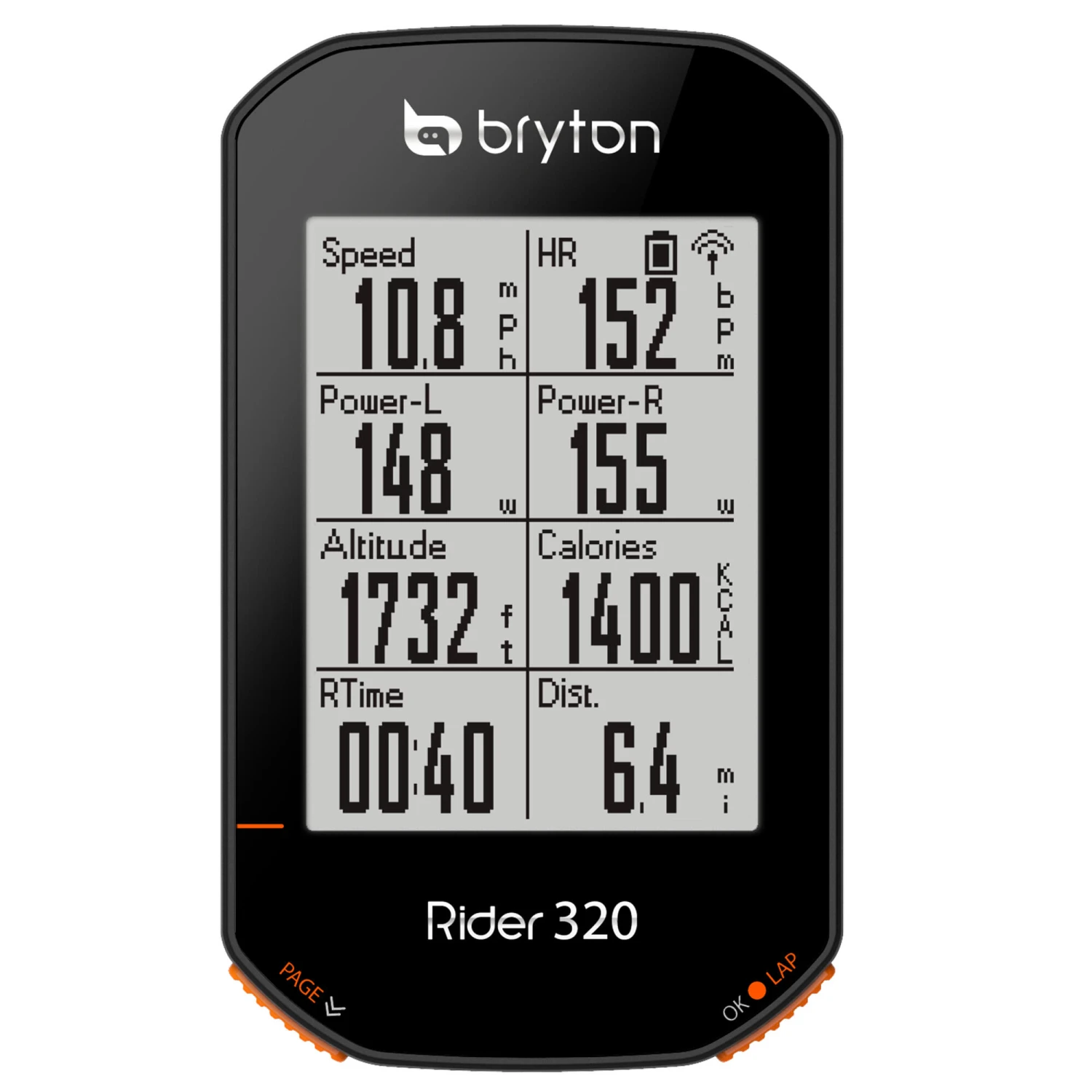 The Rider 320e is equipped with a large 2.3 inch black and white screen to offer the best possible visual experience. The high-quality, optically bonded screen provides clear, clean viewing from every angle and is not affected by the surrounding environment. With just a glance at the cycling page, which contains up to 8 kinds of feedback per page, you can easily understand your performance in real time.
