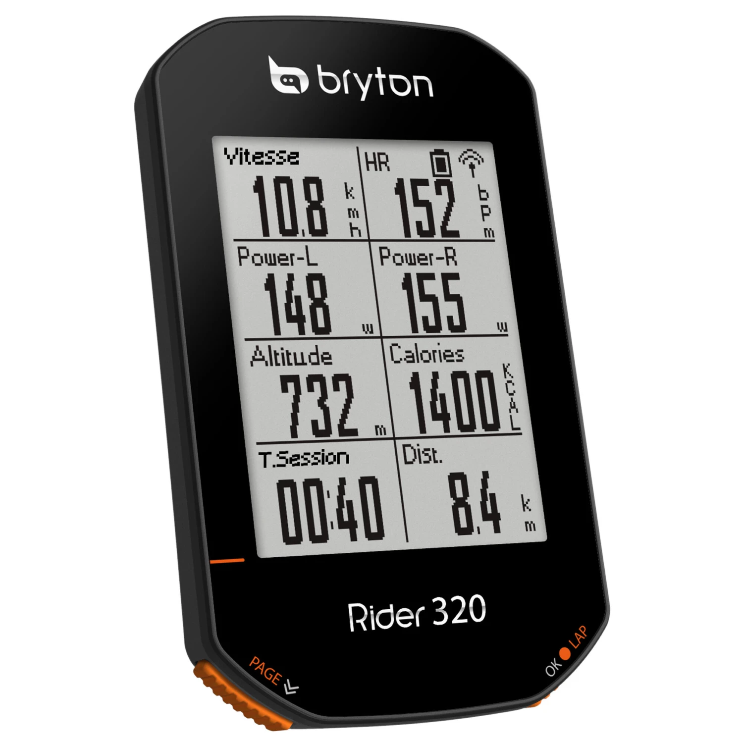 The Rider 320e provides you with a full set of data to analyse your performance on your rides. It offers more than 77 functions, including Duration, Speed, Distance, Calories, Pace, Altitude, Power, Heart Rate, etc.