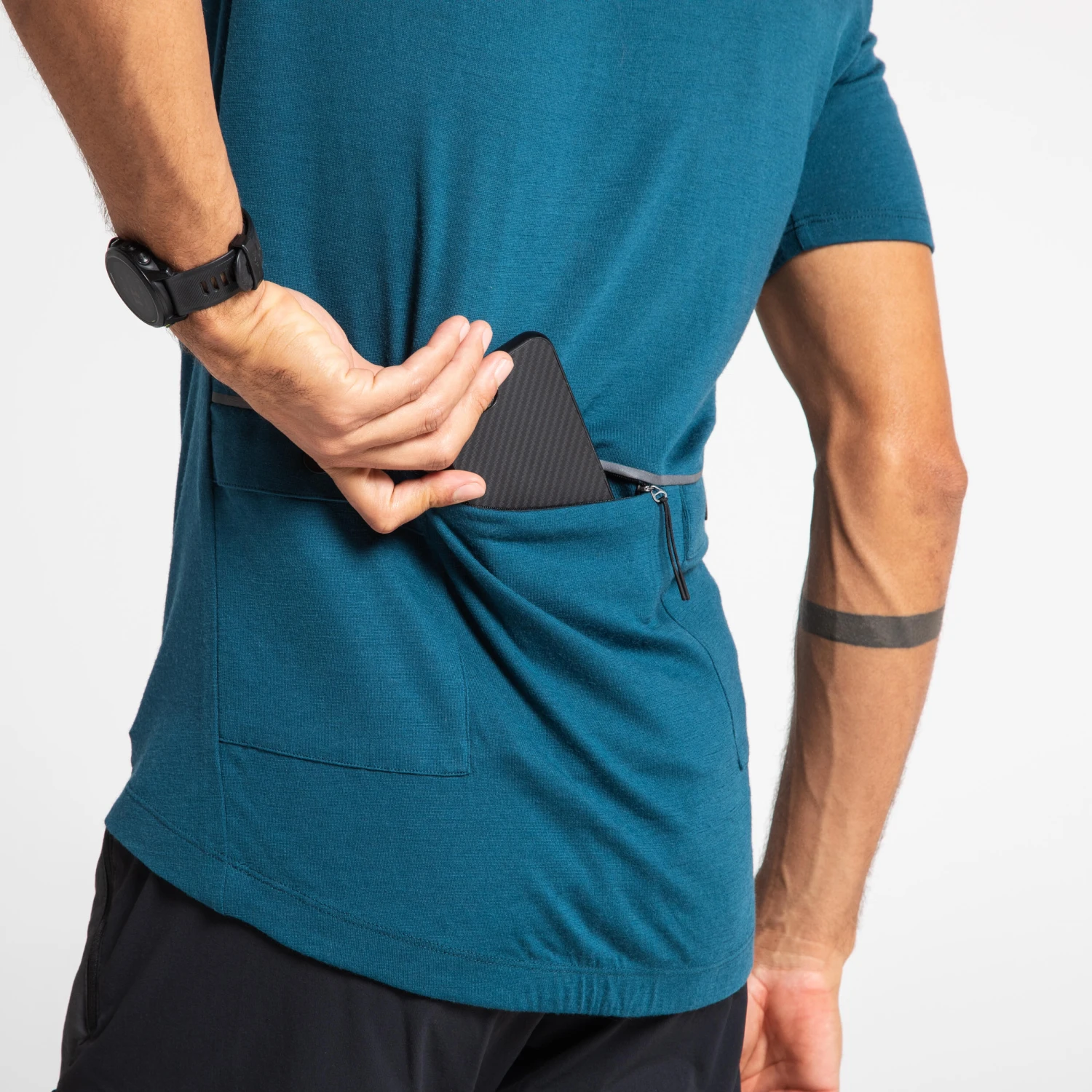 Our polo is designed in Merino wool with a cycling fit and an elasticated lower back for good hold on the low back