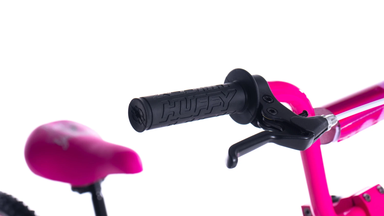 She’ll just love zooming around the neighbourhood; the decorated handlebar pad, comfortable Huffy-branded grips and vibrant hot pink wheels further enhance the charm of this beautiful bike.