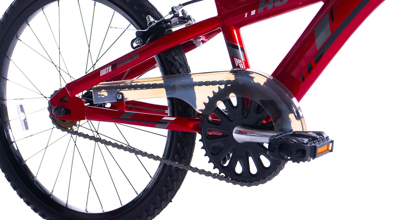 The Ignyte single-speed boys BMX bike has a gloss Crimson Red finish that just looks awesome; an alloy quick release for the seat post enables easy height adjustment while the railed seat and handlebar are adjustable to ensure the right fit.