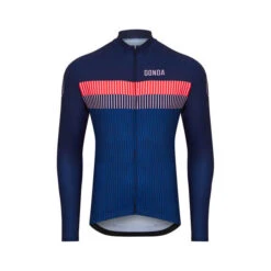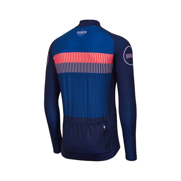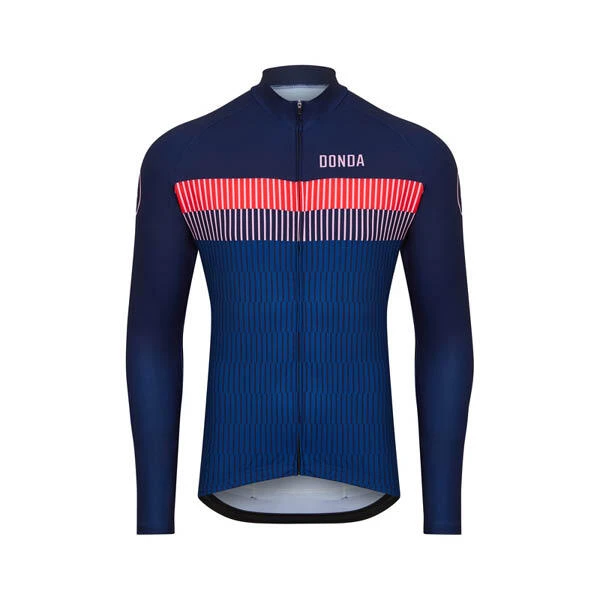 A new long sleeved multi-blue premium Jersey design set for multiple conditions. The Jersey is constructed with breathable and Quick Dry stretch fabric tailored to your body.