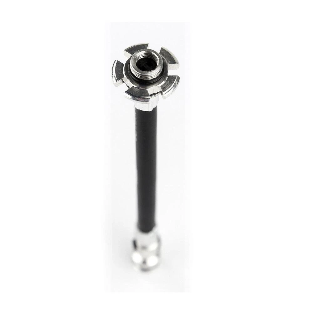 Lightweight, CNC machined aluminium construction. Efficient and compact overlapping handle optimized for high pressure applications. The Lezyne Road Drive hand pump comes equipped with Presta and Schrader valve compatible ABS Flex Hose with integrated valve core tool. Includes a composite matrix frame pump mount.