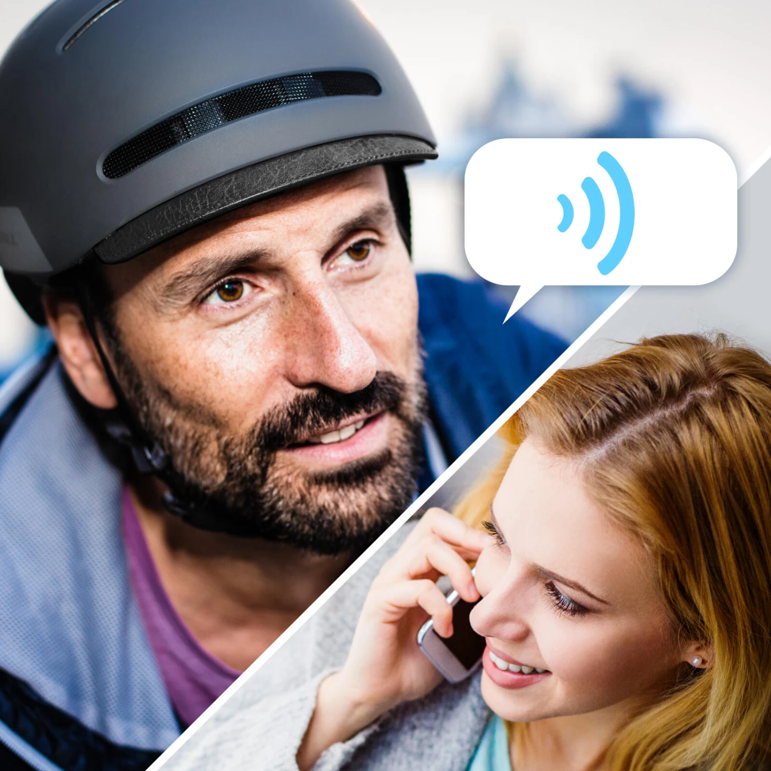 - Stereo speakers – Quality music, audiobook, and podcast playback is delivered through Bluetooth stereo speakers strategically placed above the ears, allowing you to stay alert to surrounding traffic.