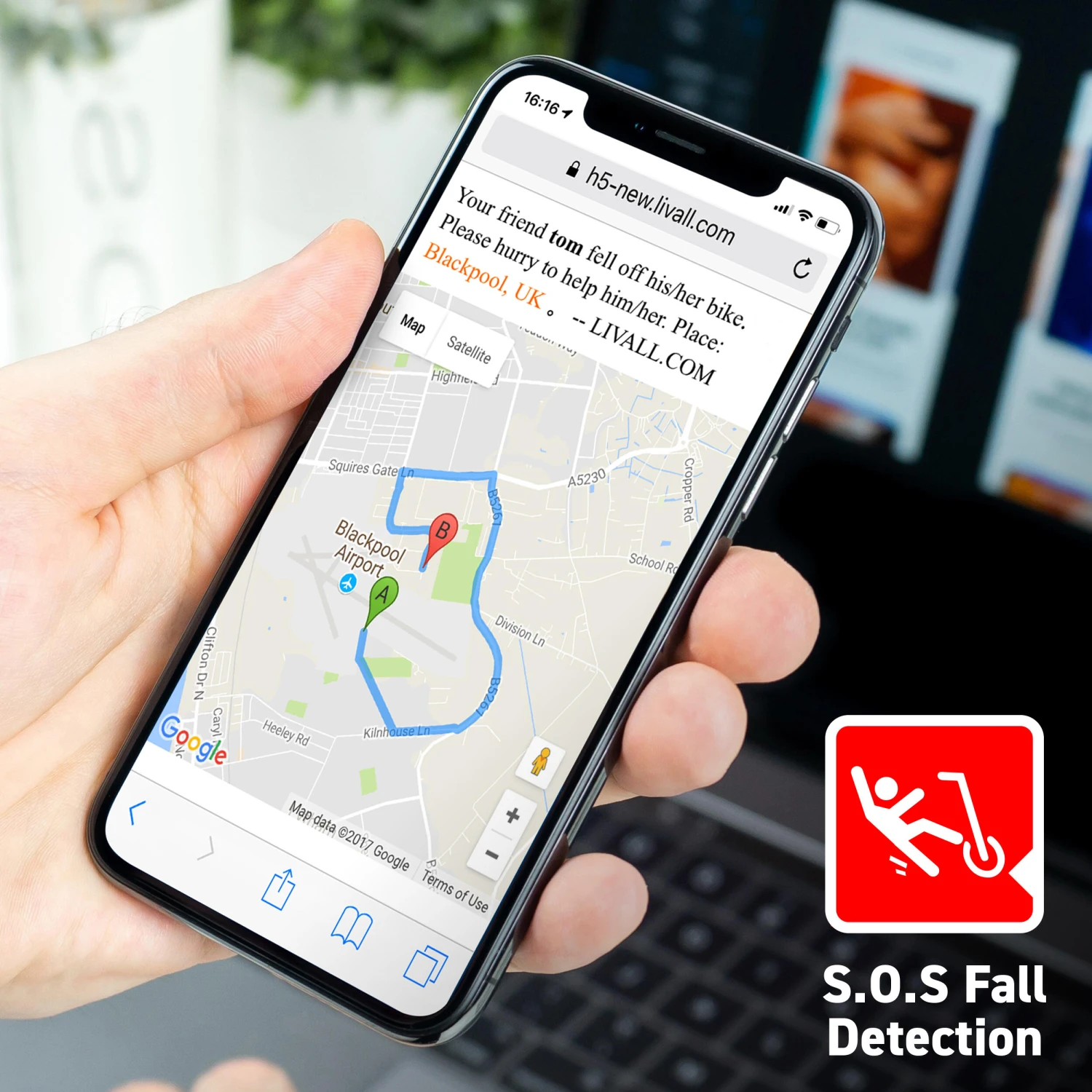 - Fall detection alert means in the event of an accident, the emergency system will kick in automatically and send your GPS location to your emergency contacts via SMS message.