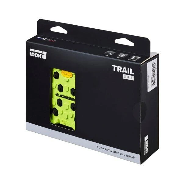 LOOK Trail Grip pedals with Activ Grip by Vibram rewrite performance and personality rules for off-road riding. Unique, mountain peak-evolved, composite stud and rubber lug tread inserts give brilliant bike control and slip free security without trashing your shoes or your shins. Race-bred bearings and four switchable colors deliver smooth style.”