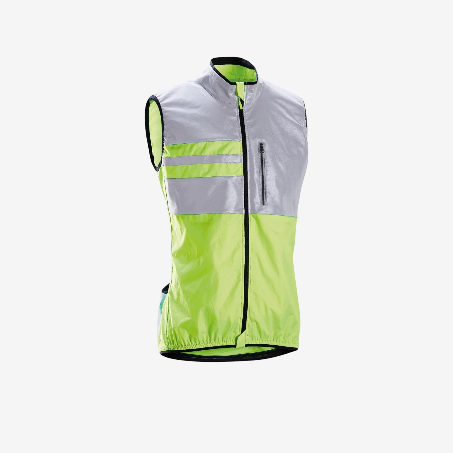 This sleeveless bike jacket can shield you when you’re riding into drizzle or wind. The colour and reflective areas help keep you visible.The waterproof front of this gilet provides protection against light rain. The neon colour and reflective areas help keep you visible day and night.