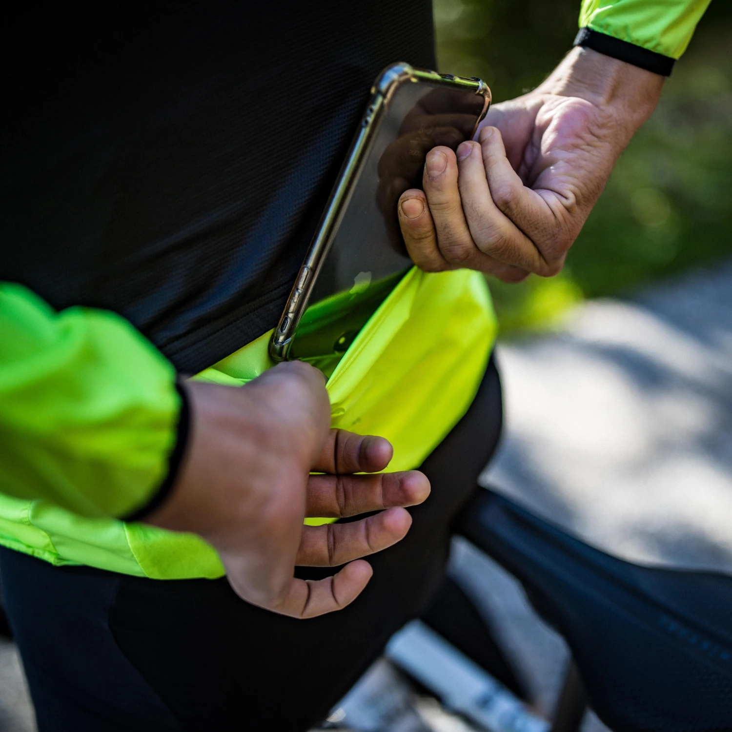 Cool temperatures, wind that’s a bit too chilly, or a hill descent? There are many times when riding that your jersey might not be quite enough. Our ultralight windproof jacket has been designed and tested based on just these issues. Designed to work in the many different conditions you can encounter on a ride, your ultralight windproof jacket stores easily in your jersey pocket using its ultra-compact foldup pouch.