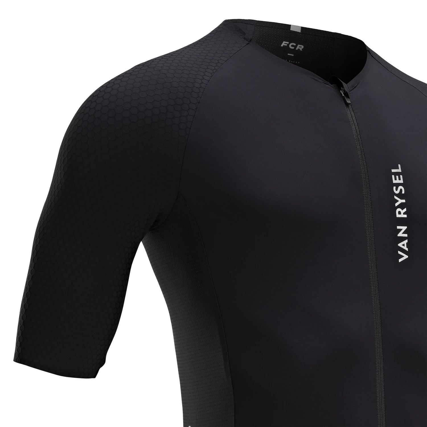 The ProRacer range is the Van Rysel range developed with and for professional cyclists. This range pairs technical features with high-end finishes.All of the design choices behind this jersey were in order to create a jersey combining light weight, aerodynamics, and the perfect fit!