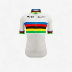 The Santini UCI World Champion jersey has short sleeves and a zip and is made from ultra-light, breathable, antibacterial fabric.The only jersey in the world recognised by Santini.