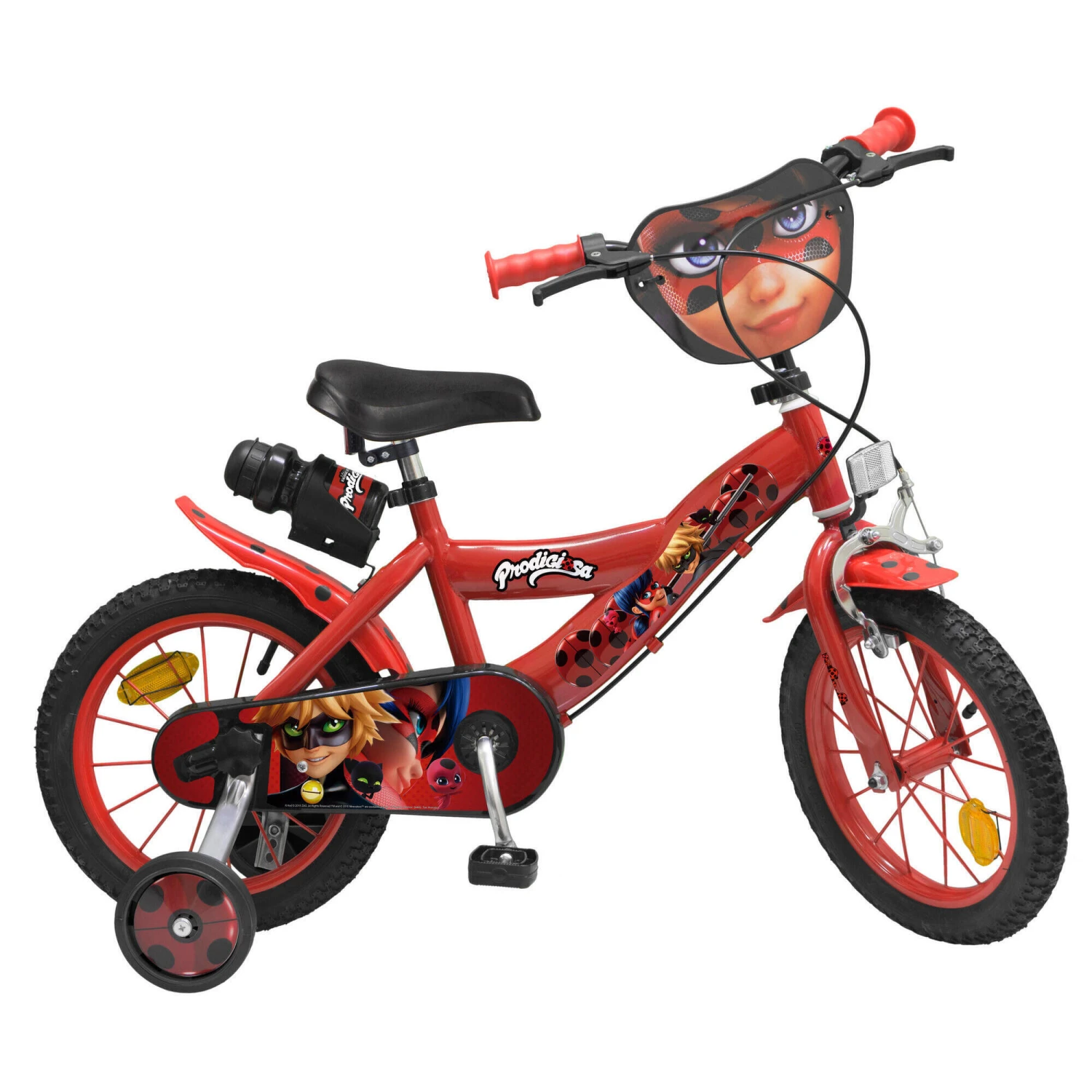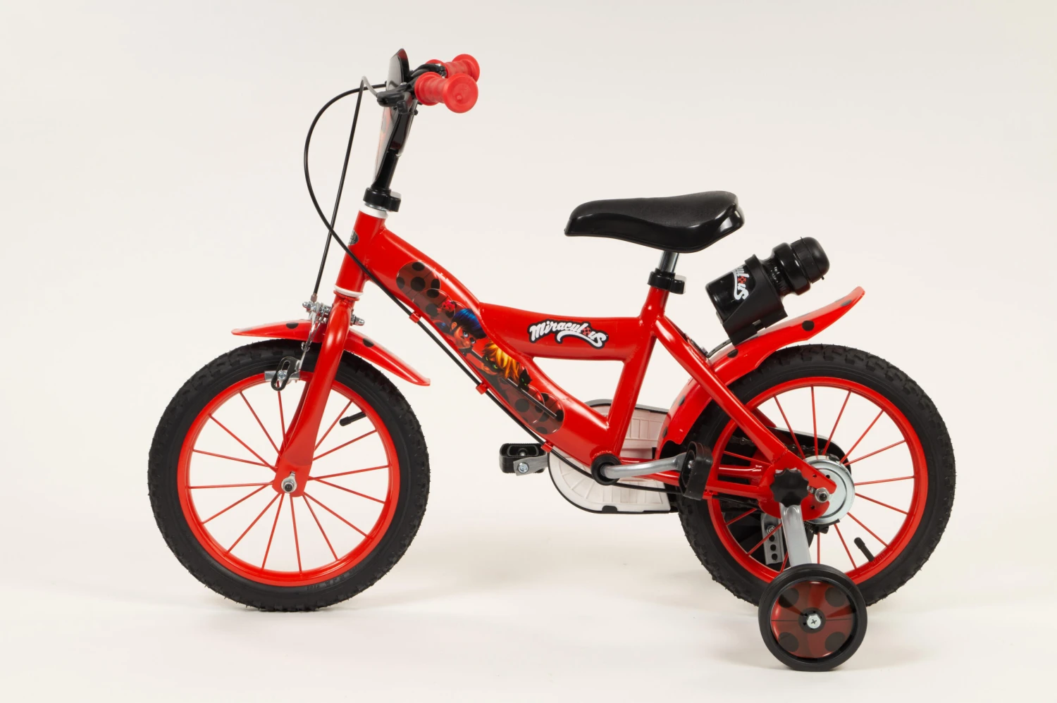 This 14” bicycle also comes with an adjustable saddle and handlebars and also comes with a rear drinks bottle and holder and a large Miraculous front shield and decals.