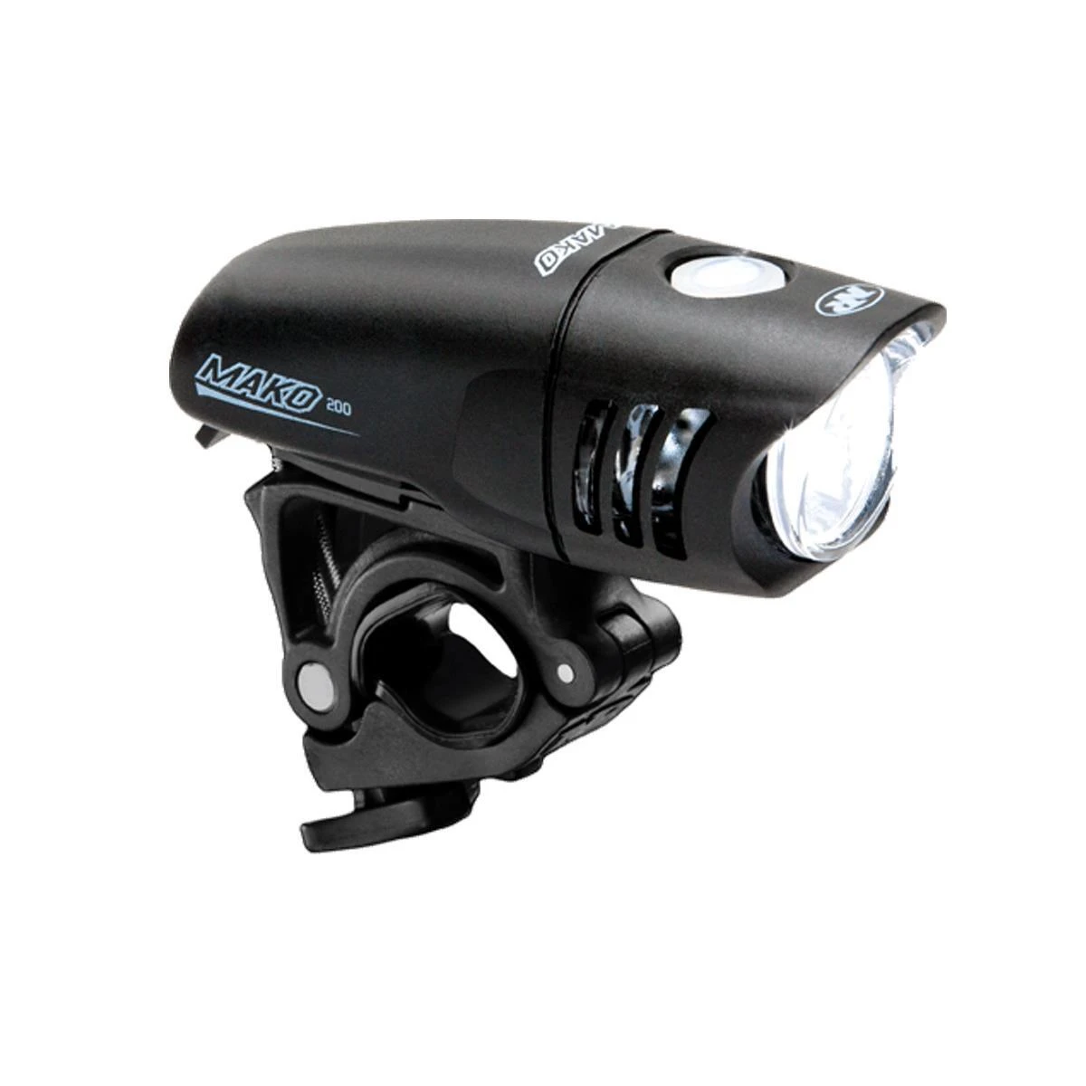 We understand lights are an integral part of your daily commute. Using a light can mean the difference between being seen or not by automobile drivers. Many of the “entry level” commuter lights are nothing more than “be seen” lights. Your overall safety and visibility should not be limited by your budget, that’s why we created the Mako™ Series. The Mako™ line offers three models and up to 250 lumens, not only allowing the cyclist to be seen, but allowing the cyclist to see as well. Our favourite feature is the side “gills” that emits light, it not only looks cool, but makes the Makos more visible. The Mako™ line is easy on the wallet and easy to operate. Economical, high output lightSuper bright flash setting ideal for daylight useEasy operation battery operated3 light settings – High, Low and Flash Lumen Output: 200Run Time: 15:00 – 60:00hrsWeight: 175gBattery: Alkaline AA x 2 WARRANTYThe Mako™ 200 is backed by NiteRider’s lifetime warranty that covers any defects in material and workmanship, mechanical components (housings, covers, mounts and fasteners) and LEDs. SYSTEM INCLUDESLED Light HeadHandlebar Mount2 AA Alkaline Batteries